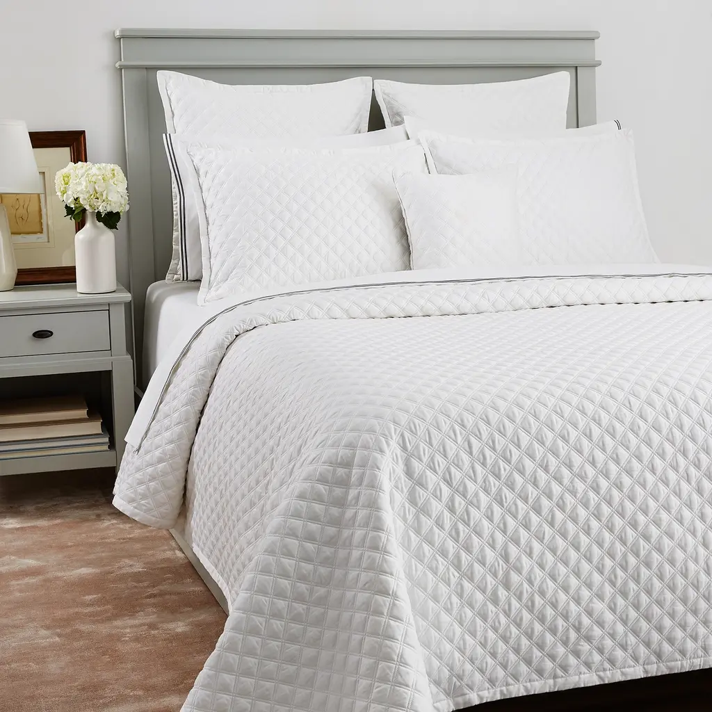 Featuring a double diamond quilted pattern, the coverlet, shams and decorative pillow in this classic collection by Hudson Park pair with a variety of printed bedding.