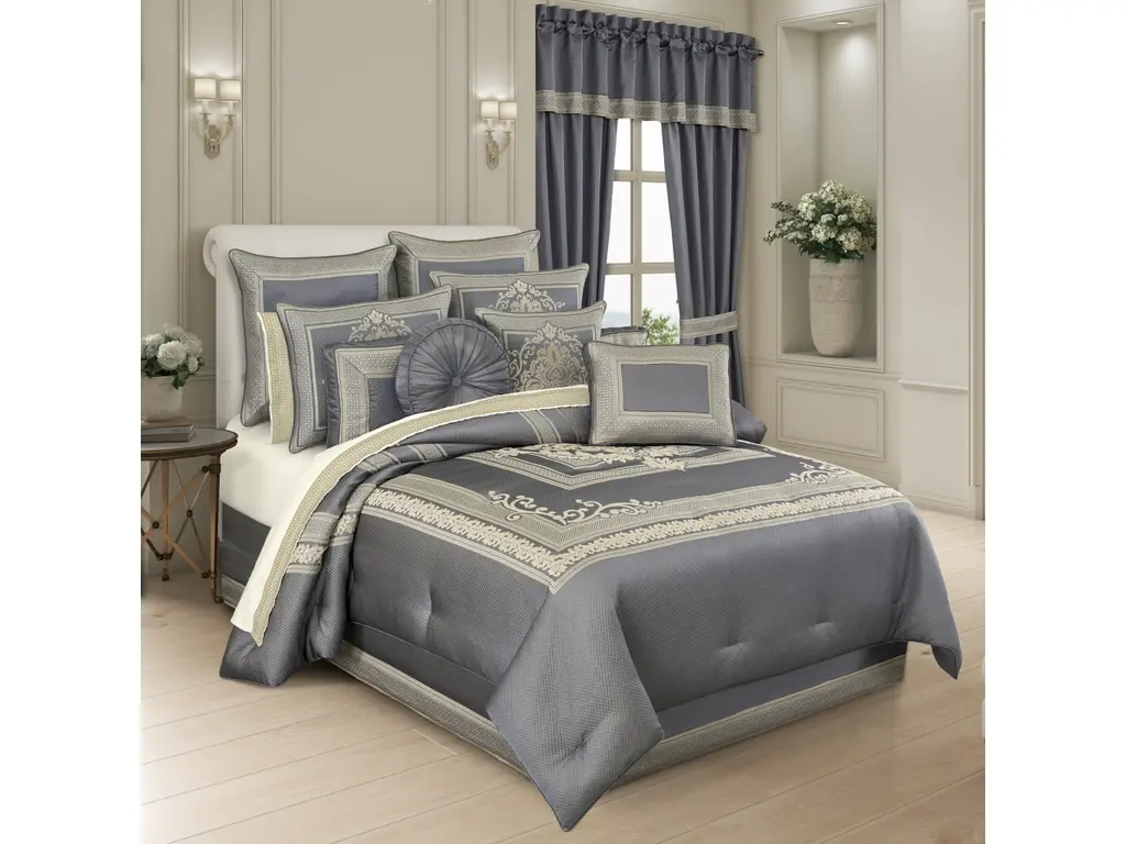 The Excelsior Euro Sham features a plush diamond embossed fabric, framed with a woven diamond border and a hidden zipper closure. Pair this stunning back Drop to the Excelsior bedding set for a complete look (each sham sold separately). Available in a French or Royal Blue color option.