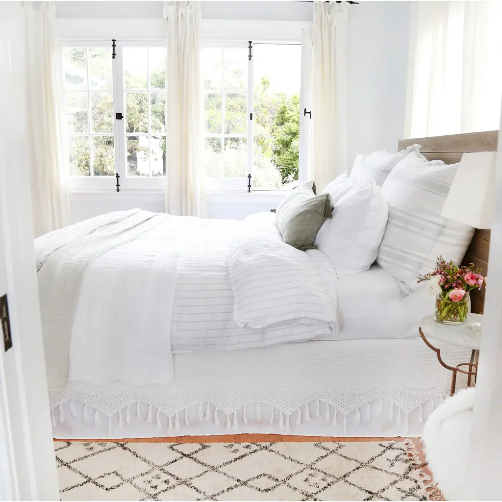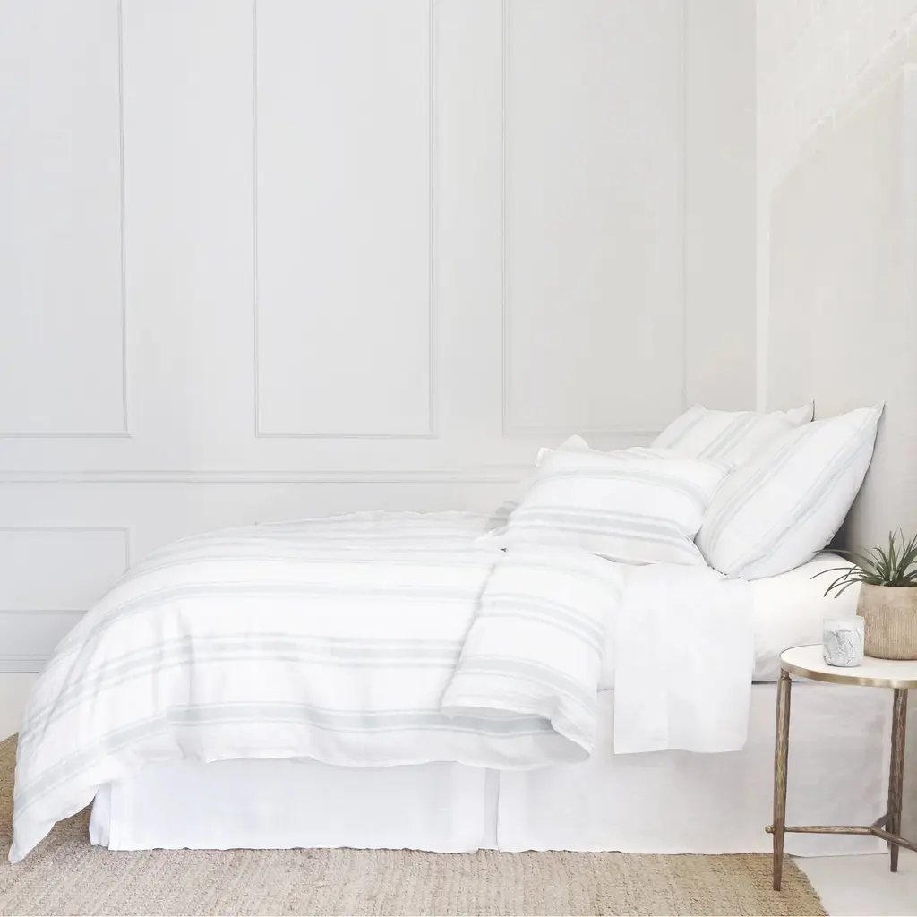 The Jackson Bedding collection is a very casual and clean line. It features a series of midnight subtle stripes on flax that create a simple and fresh look. Its shams are finished with shell button closures. Features