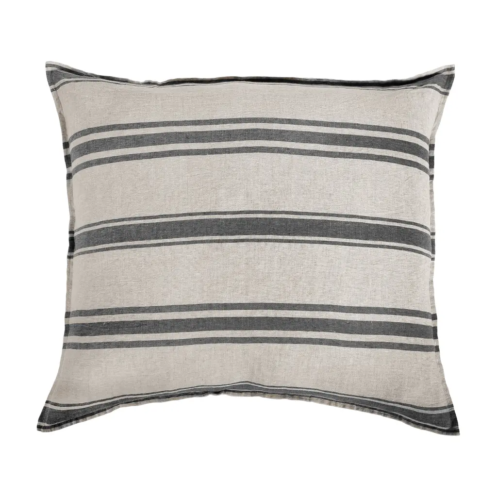 The Jackson Bedding collection is a very casual and clean line. It features a series of midnight subtle stripes on flax that create a simple and fresh look. Its shams are finished with shell button closures. Features