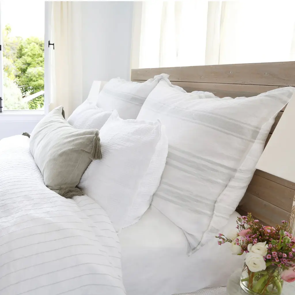 The Jackson Bedding collection is a very casual and clean line. It features a series of midnight subtle stripes on flax that create a simple and fresh look. Its shams are finished with shell button closures. Features