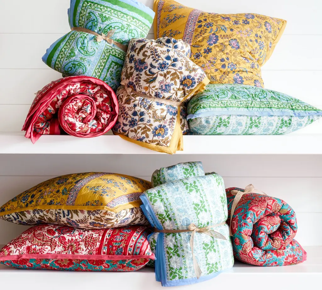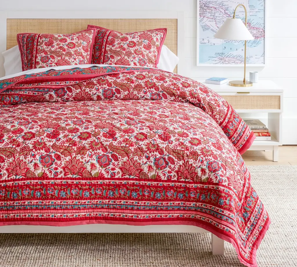 Rooted in block print tradition, this bedding blooms with vibrant florals and rich, saturated colors. The detailed design was originally hand carved on wood, then transferred and printed on cotton. Supremely soft and lightweight, it’s perfect for layering, and the coordinating patterns let you switch up your look with ease.