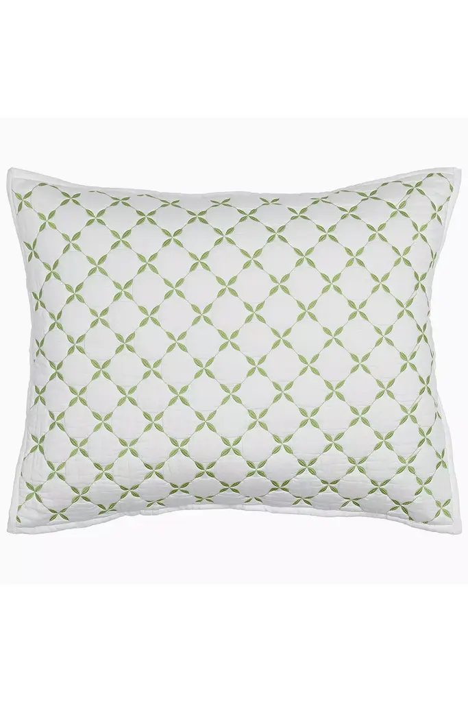 Inspired by the perfect geometry of Mughal gardens, this quilt is a tailored classic. Soft cotton voile is wonderfully light for those who sleep warm or a perfect layer to add to your bedding mix.* Printed on pure cotton voile: a soft, lightweight fabric with a smooth surface.* Hand quilted* Euro (26" x 26") has hidden zipper* Machine wash cold separately, delicate cycle, tumble dry low, do not bleach, iron at medium setting if necessary.* Imported#### *Dimensions** Standard Sham: 20" x 26"* King Sham: 20" x 36"* Euro Sham: 26" x 26"