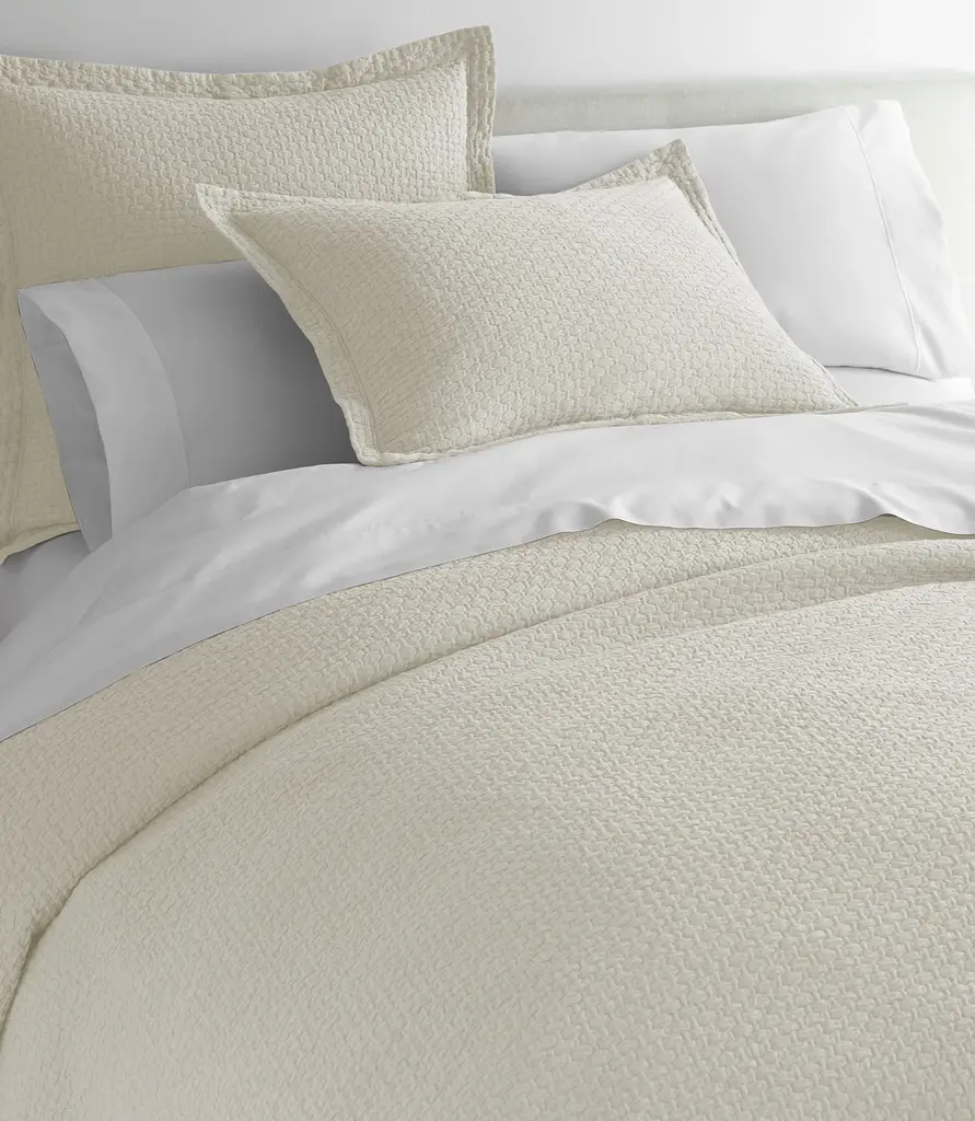 Our Juliet Matelassé Shams are a long time favorite. Its textured basket weave design and garment-washed finish make it soft and sumptuous. Available in five favorite neutrals to go with all of your Peacock Alley bedding.