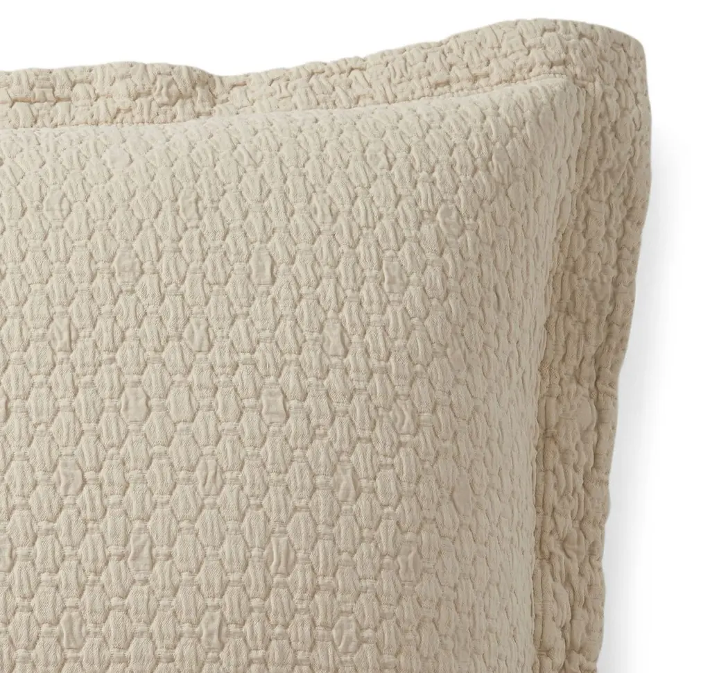 Elegant and understated, this flanged cotton Euro sham features a large-scale, textured basket-weave design in a neutral hue. Envelope closure.