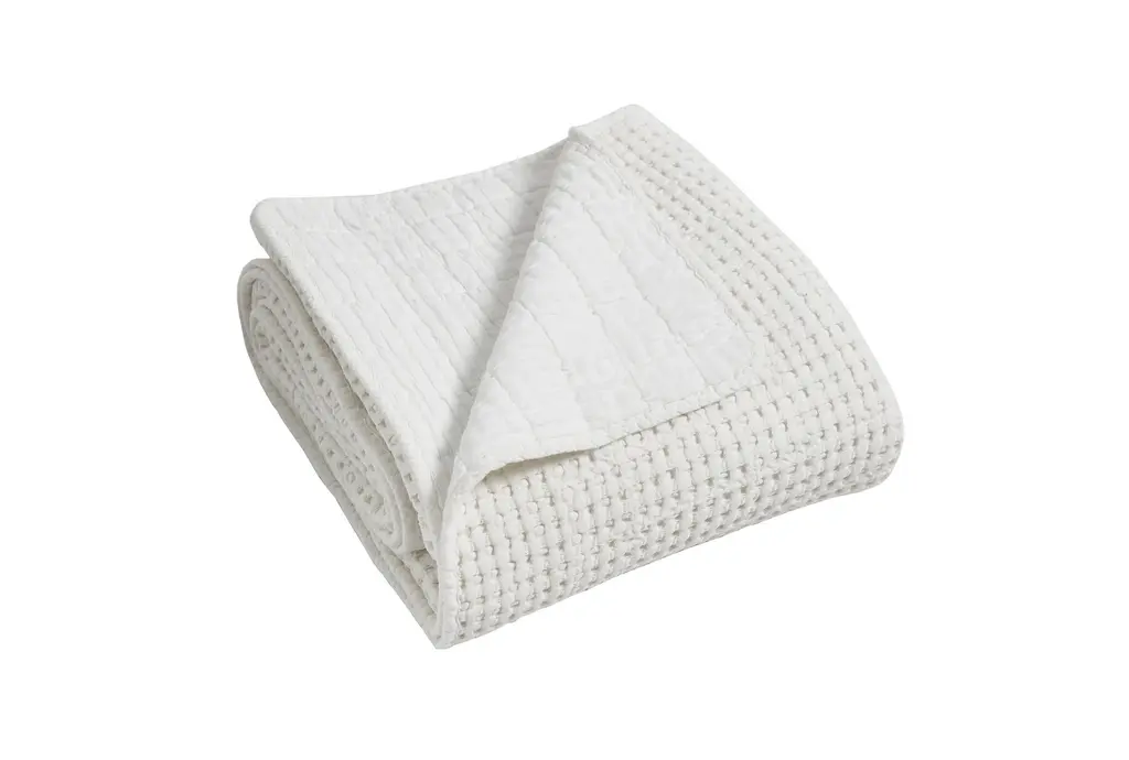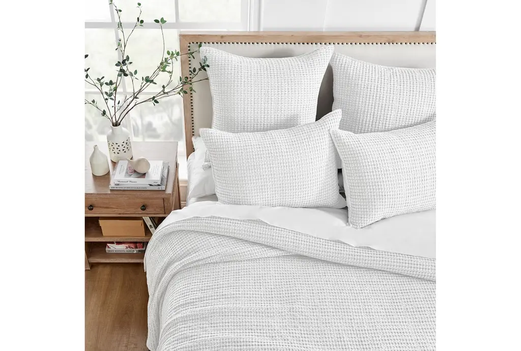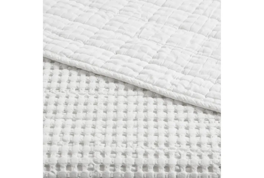 King Bedspread- Bright White Cotton Waffle Weave 3 Piece Set With 1 Bedspread + 2 Shams | Machine Washable | California King