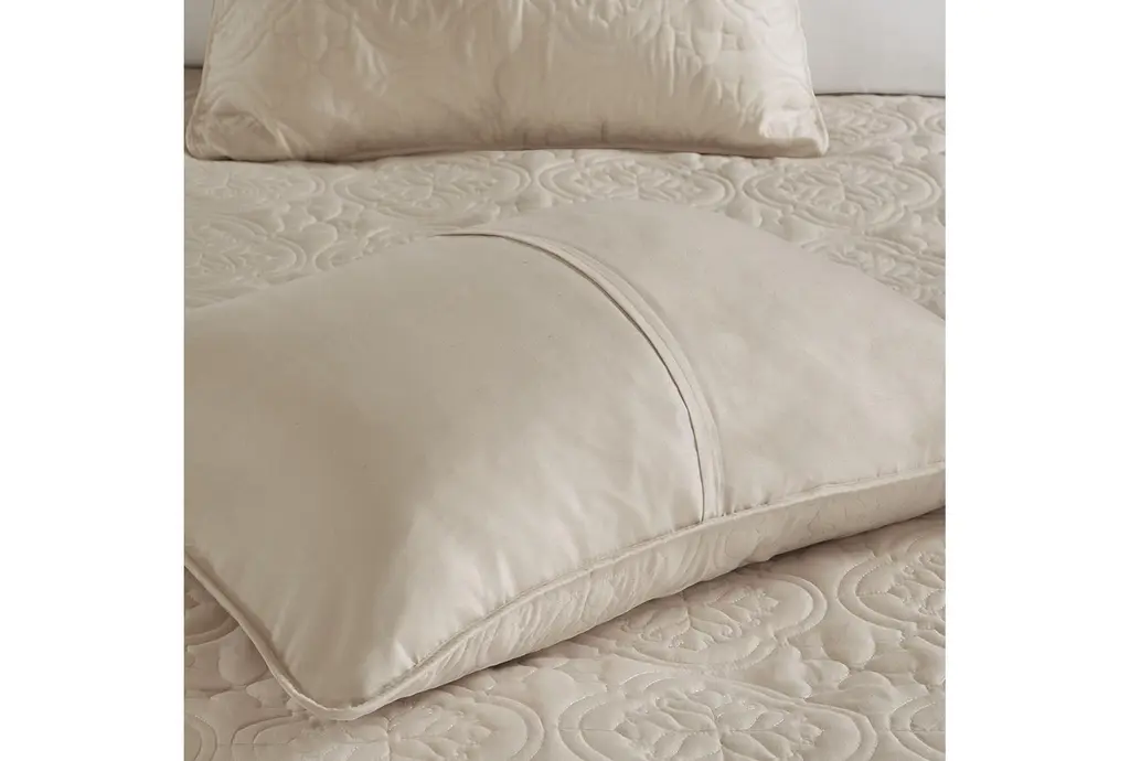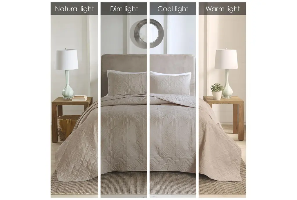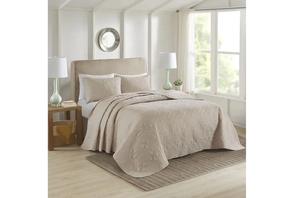 King Bedspread-Khaki Oakley Polyester Reversible 3 Piece Set With 1 Bedspread & 2 King Shams | Machine Washable