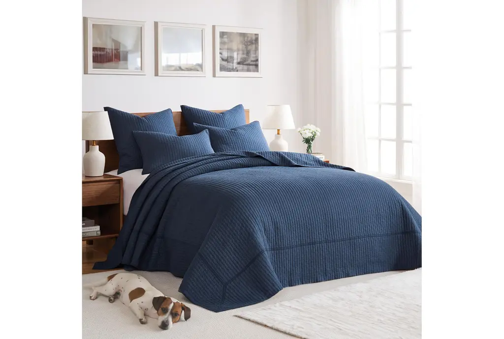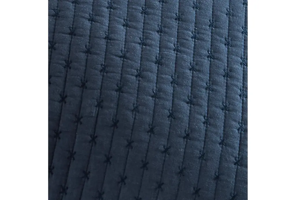 King Bedspread-Navy Blue Cotton Cross Stitch 3 Piece Set With 1 Bedspread + 2 Shams | Geometric | Machine Washable | California King