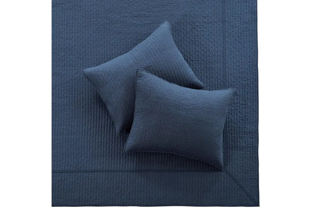 Transform your bedroom with the King Bedspread-Navy Blue Cotton Cross Stitch 3 Piece Set. This California King bedspread set includes one bedspread and two shams, providing both comfort and style. The geometric cross-stitch design and deep navy color add a modern farmhouse touch to any space.