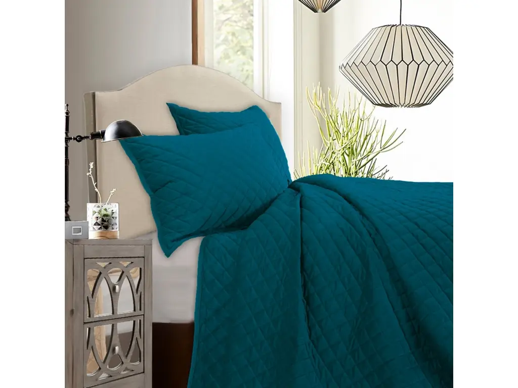 King Bedspread- Purple Quebec Reversible Polyester 3 Piece Set With 1 Bedspread & King Shams | Machine Washable