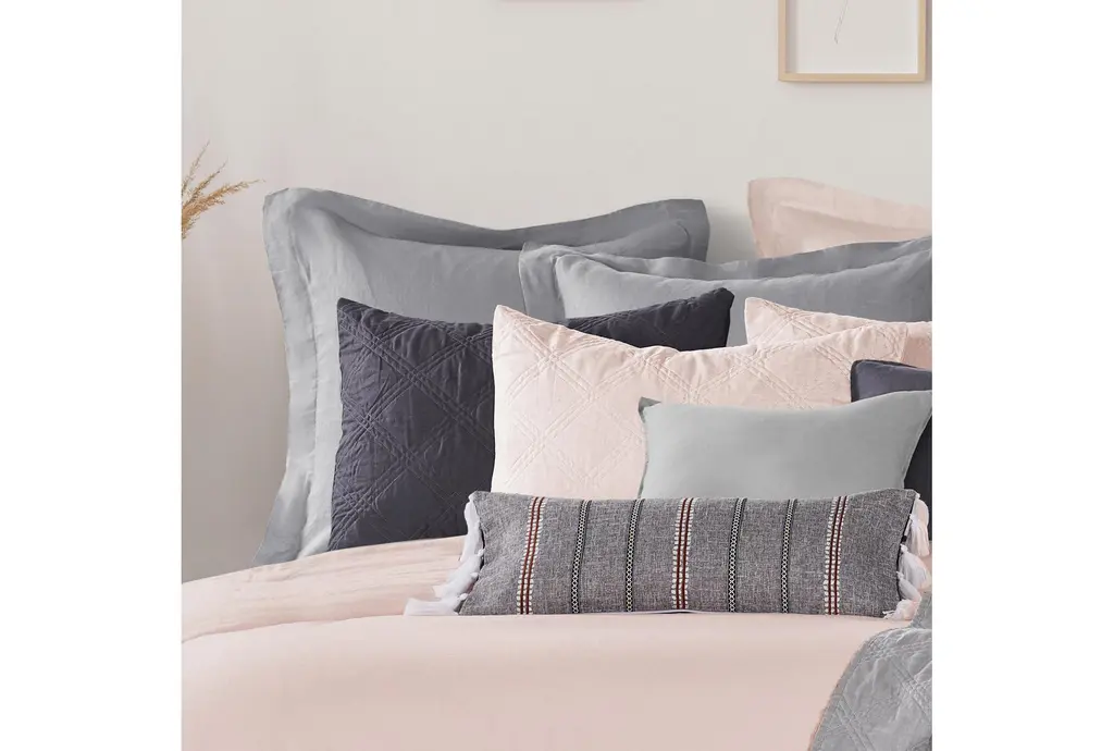 Introducing the King Sham Charcoal Black Quilted Washed Natural Linen Eastern King, designed to add comfort and style to your bedroom. This sham features a timeless quilted design with square lines and stitching that bring a classic touch to any space. Made from 100% linen, it offers durability and a soft feel, perfect for a restful night's sleep.