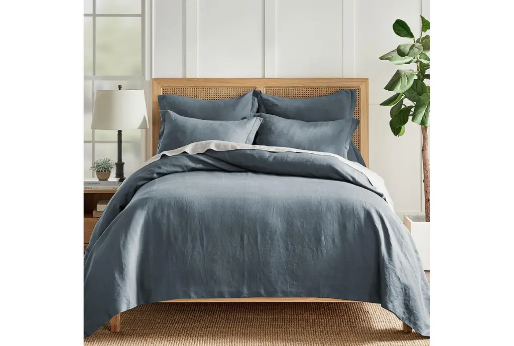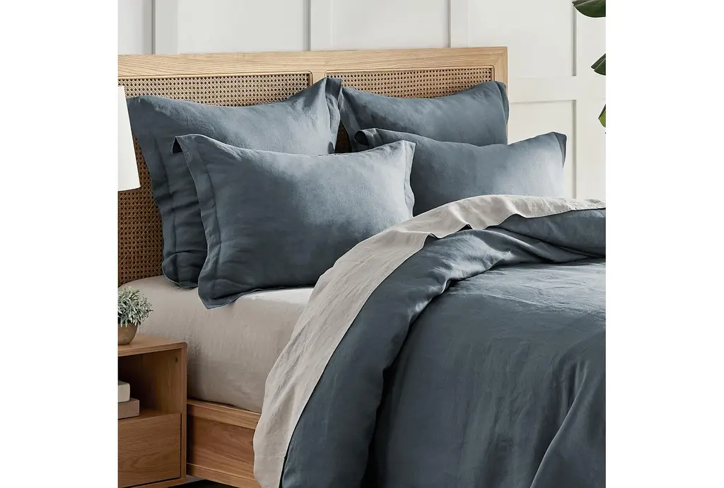 King Sham-Denim Blue Washed Linen | Machine Washable