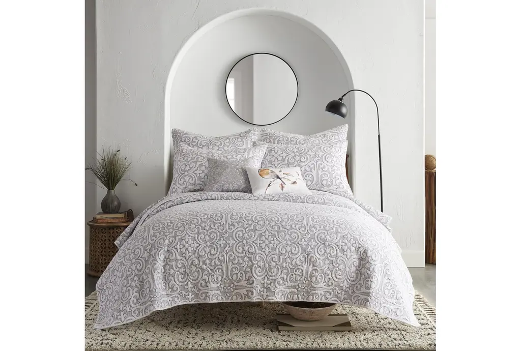 The King Sham Set in Black Red Reversible Natural Cotton Stitch Medallion Pattern is designed to enhance your bedroom with its classic and timeless appeal. Made from 100% cotton, this set provides comfort and durability while adding a touch of sophistication to your space. The reversible design offers versatility, allowing you to switch up your decor with ease.