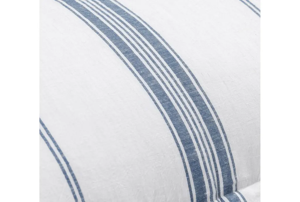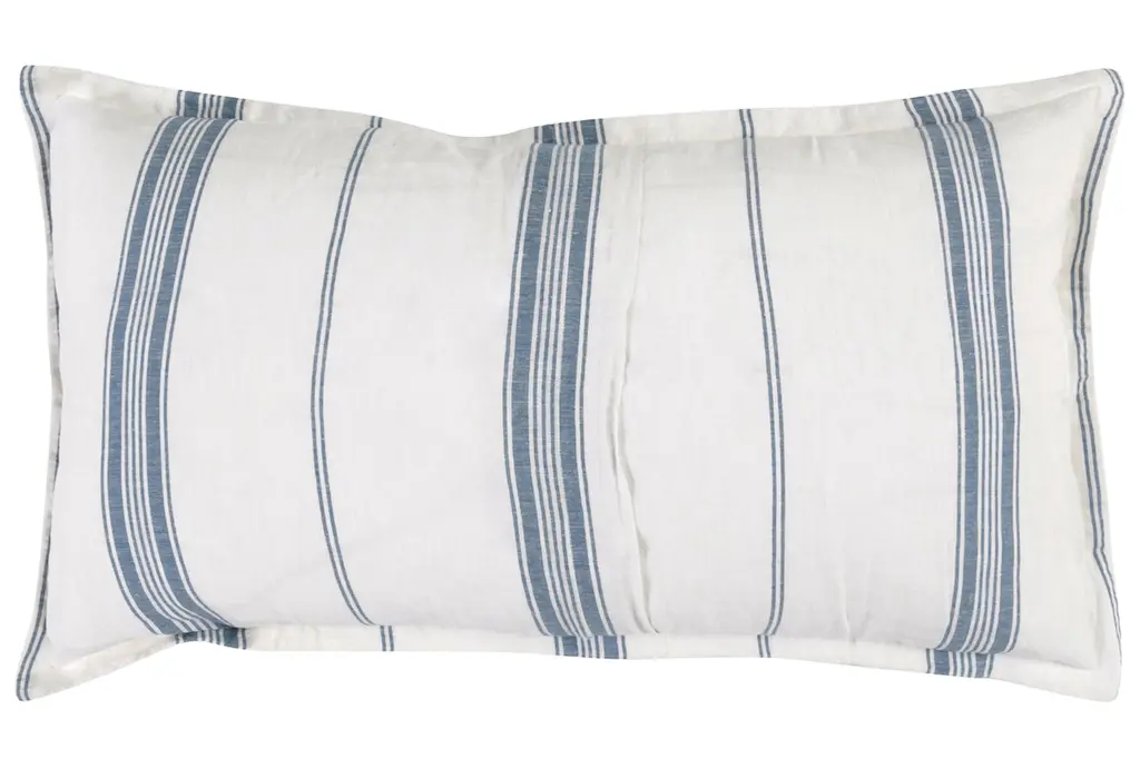 King Sham-White With Blue Stripe Linen Cotton Cashmere Blend