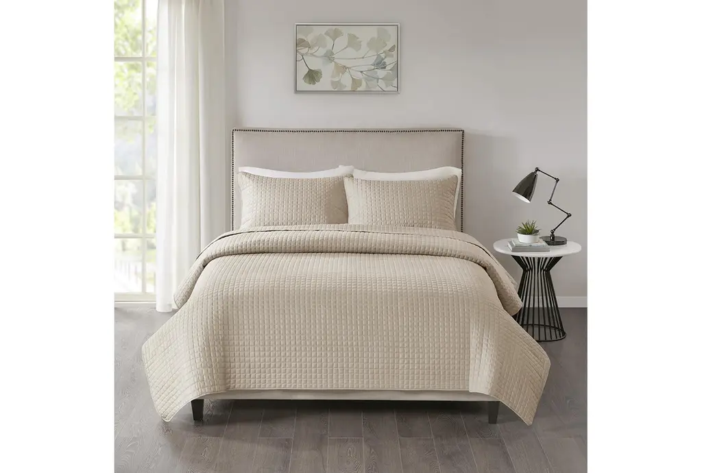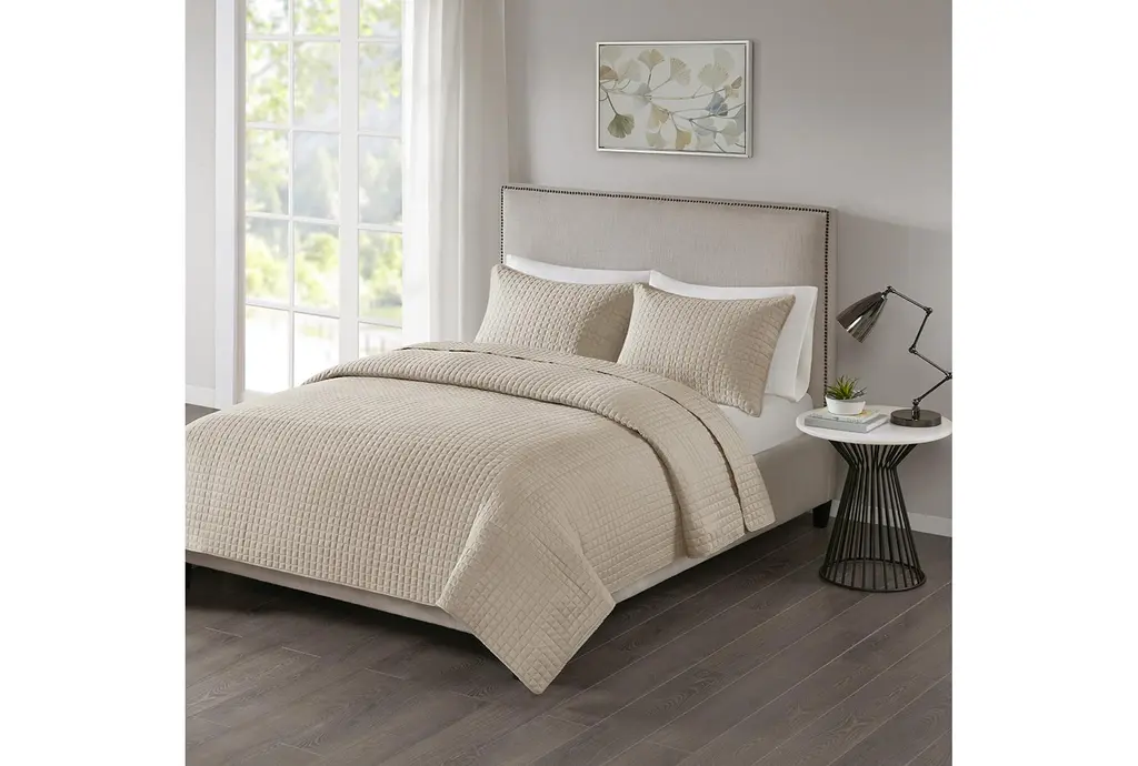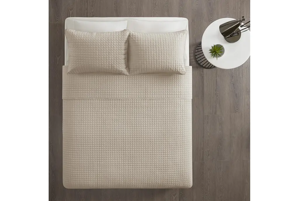 King/cal King Quilt-Khaki Otto Reversible Polyester 3 Piece Set With 1 Quilt & 2 King Shams | Machine Washable