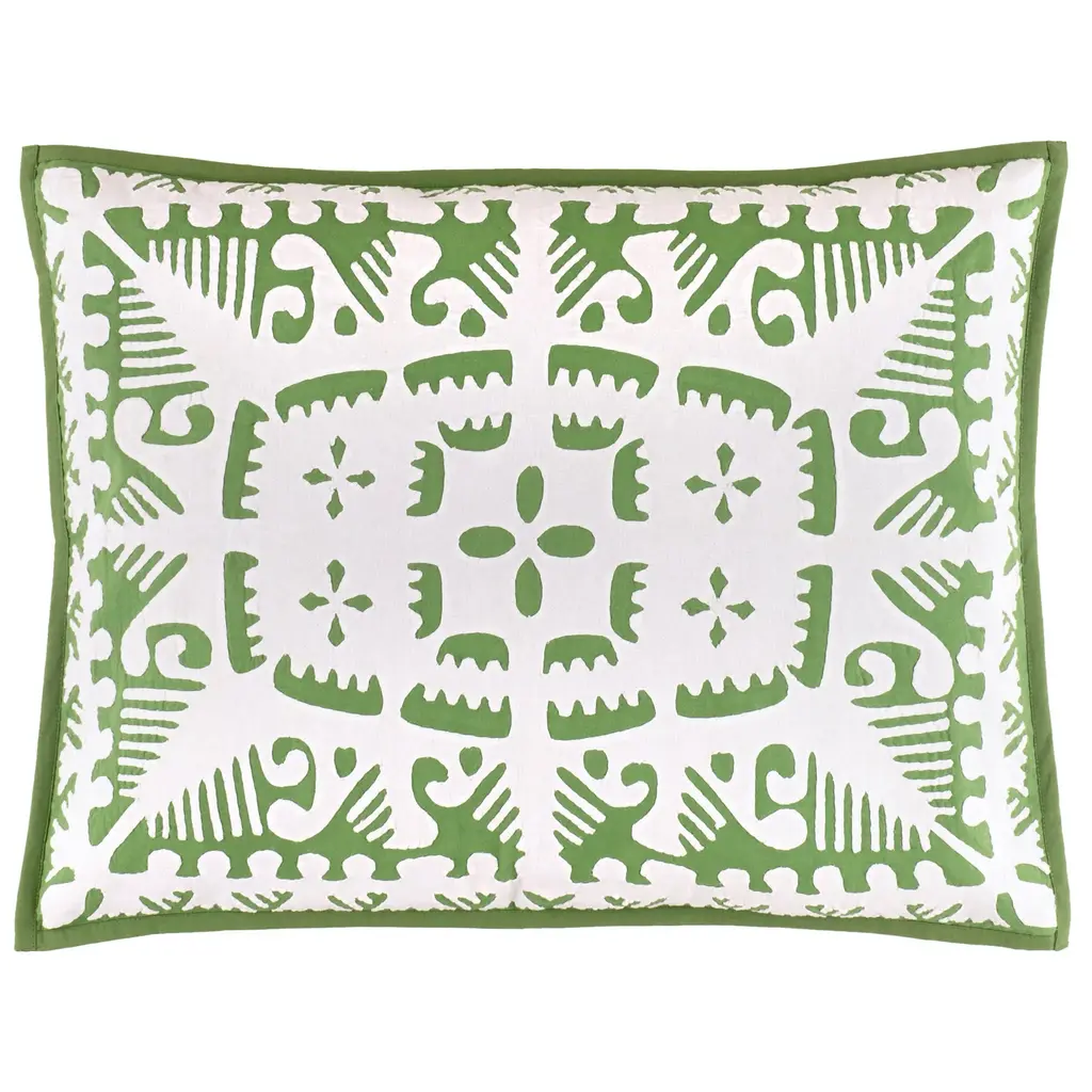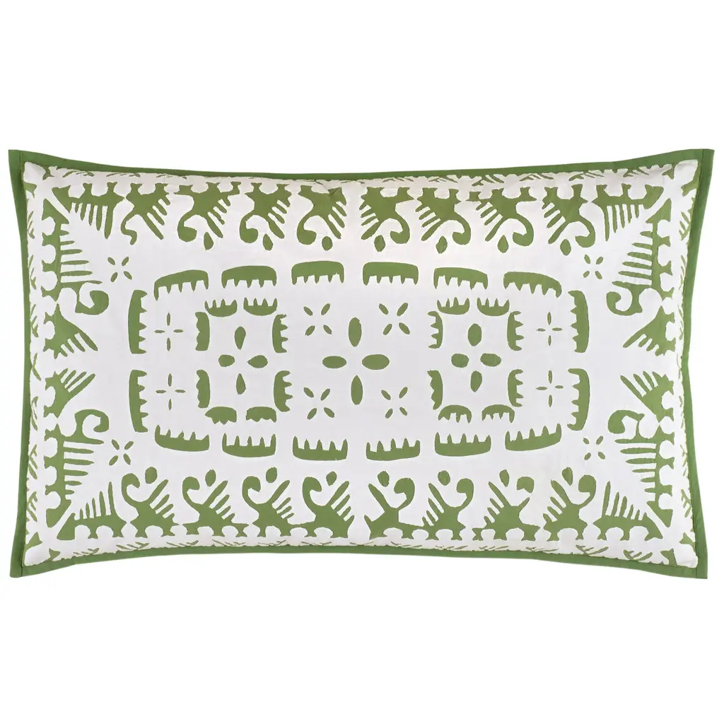Part of our design collaboration with Kit Kemp. This one-of-a-kind sham boasts an exquisite handstitched cutwork design on 100% cotton. Solid on the reverse.