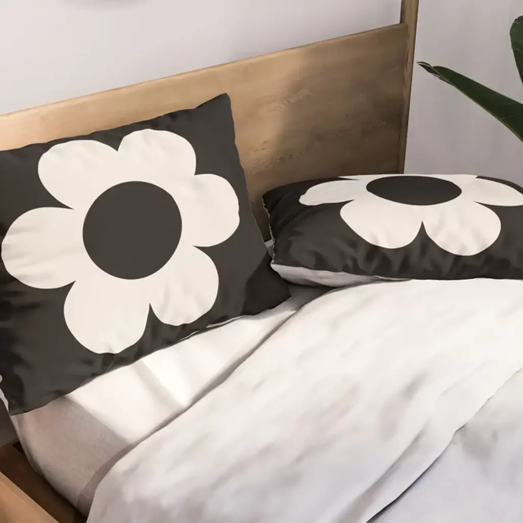 La Fleur | 06 - Retro Floral Print Black And White Flower Pillow Sham