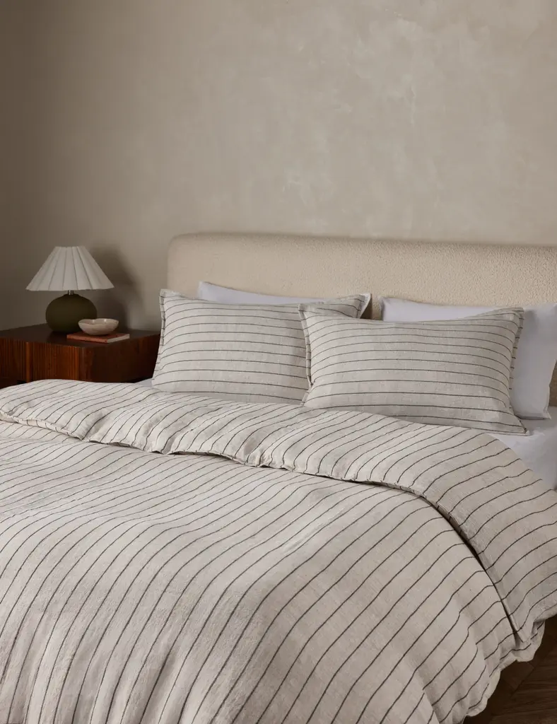 Layer your bedding with a timeless touch set for fresh appeal. The striped pattern of this linen shame balances a neatly tailored look with a relaxed and inviting look that gets softer with every wash. This piece is from our exclusive Sarah Sherman Samuel collaboration and features all the trademarks of her warm, edited style.