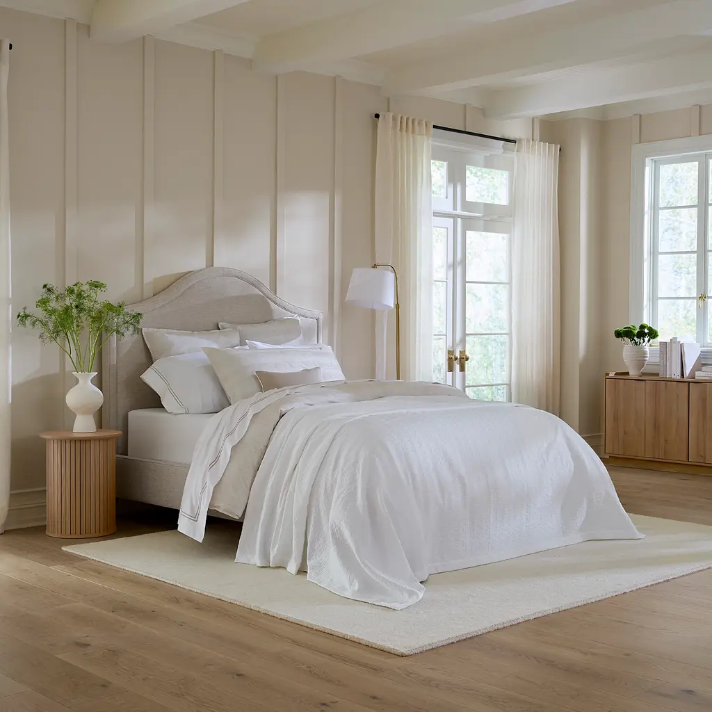 Lecce is the epitome of understated elegance crafted from long-staple cotton in a luxurious coverlet weave. Its simple textured brick pattern adds depth and warmth transforming any bed into a sanctuary of calm.