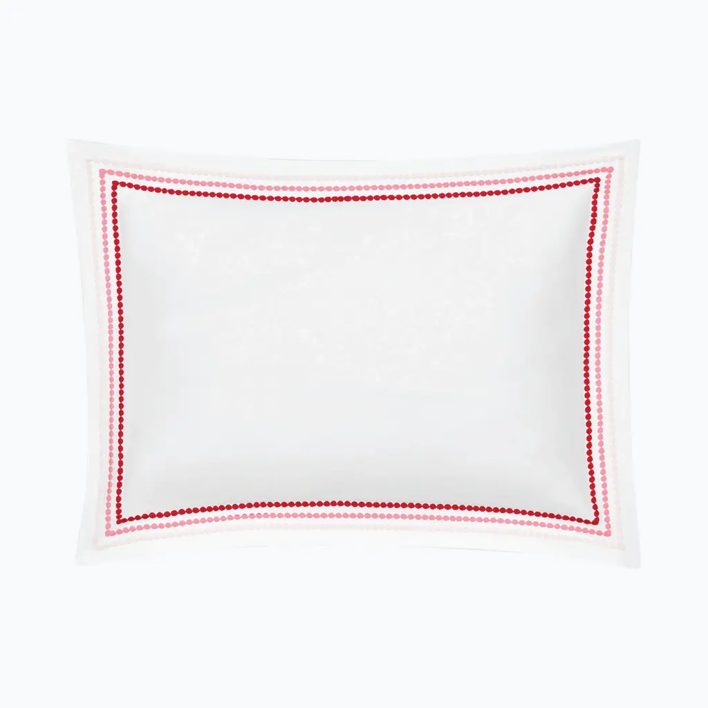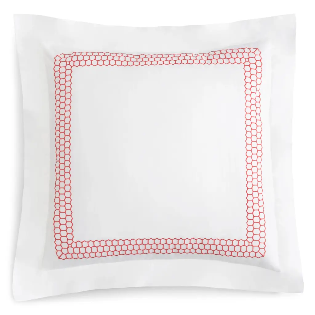 Crafted in luxurious, crisp 520-thread count cotton percale, this sham by Matouk features a frame of geometric embroidery.