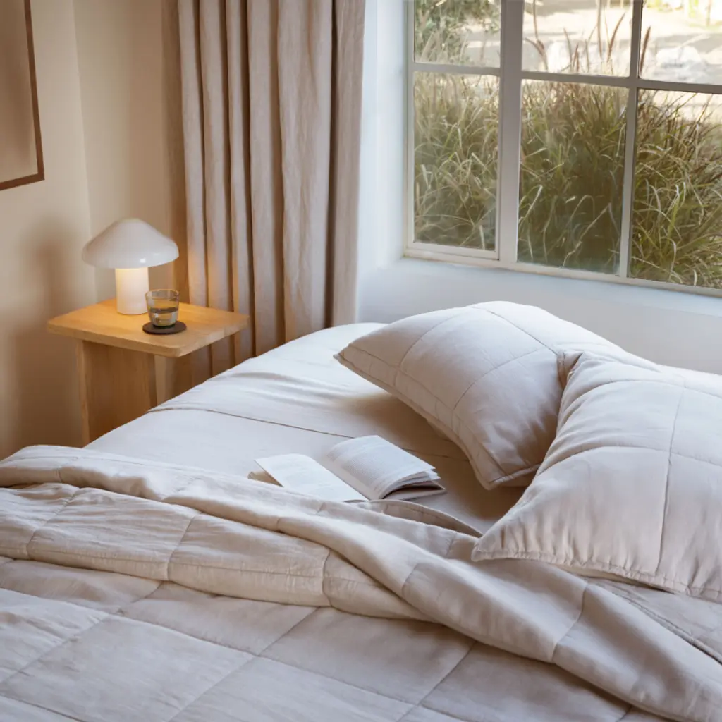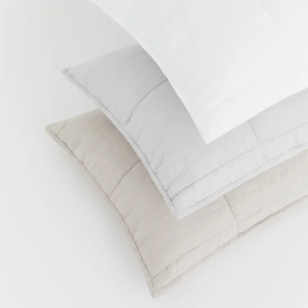 The Linen Quilted Sham Set is curated hotel luxury for The Bedroom. Made of 100% European flax linen with a lived-in texture that softens with every wash. An effortless decorative finish. Pairs perfectly with the Classic Bed and the Linen Box Quilt.