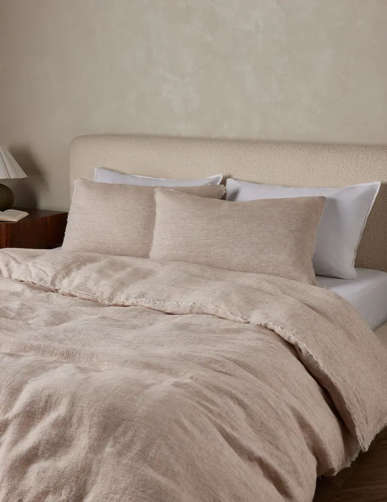 Pom Pom at Home offers superior linens and textiles made with the highest quality natural fibers for that relaxed, lived-in feel. Simple yet stylish, the Logan sham features a subtle heathered effect for added texture in any bedroom. Made from linen, its frayed edges add a touch of unexpected detail to match with the corresponding duvet cover. Finished with shell button closures.