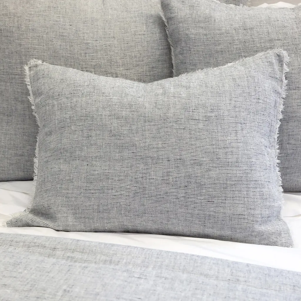 Subtle frayed edges of soft linen add a dash of unexpected detail to this Logan Collection. Woven with two different colored yarns for a heathered effect, the duvet cover and shams feature shell button closures. Features