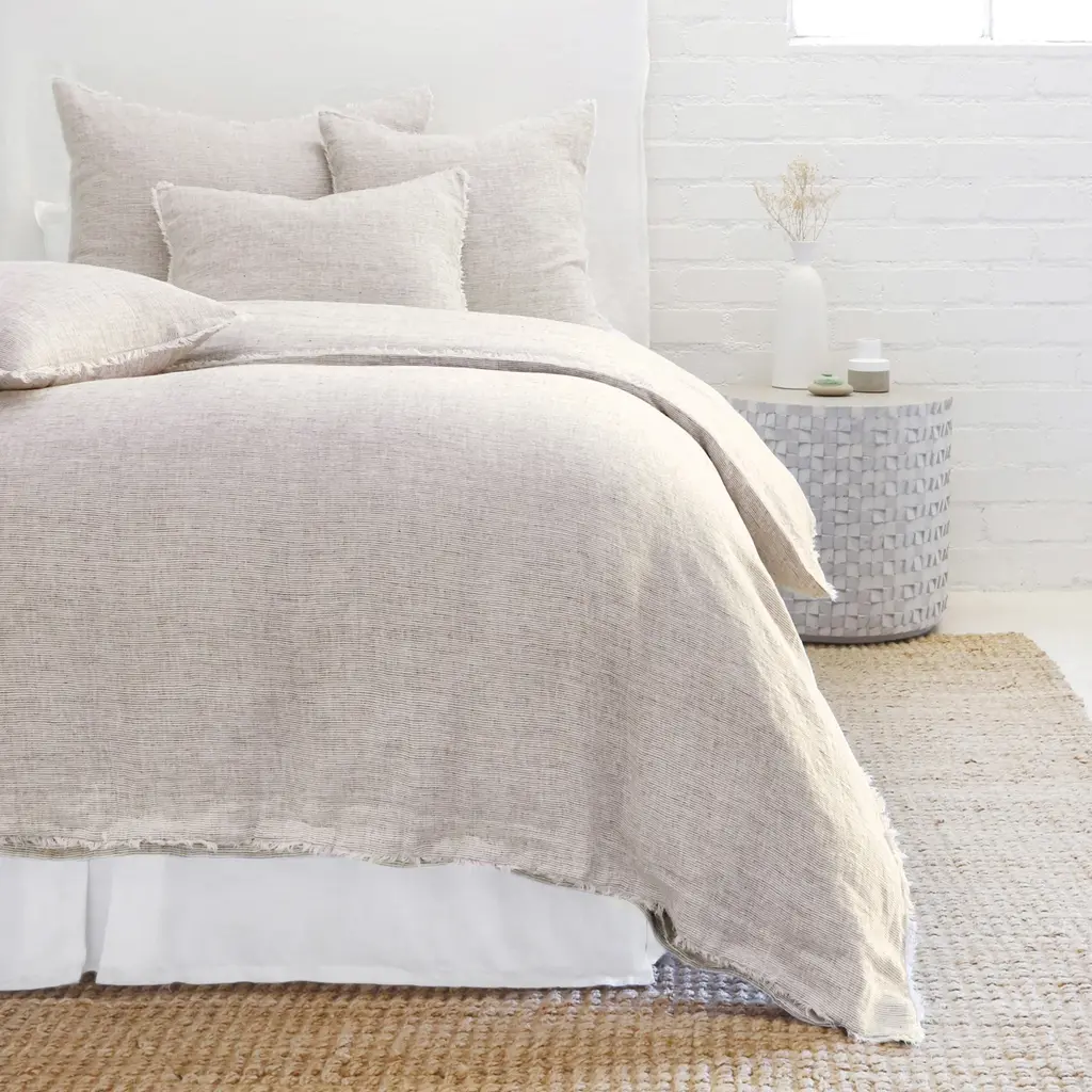 Subtle frayed edges of soft linen add a dash of unexpected detail to this Logan Collection. Woven with two different colored yarns for a heathered effect, the duvet cover and shams feature shell button closures. Features