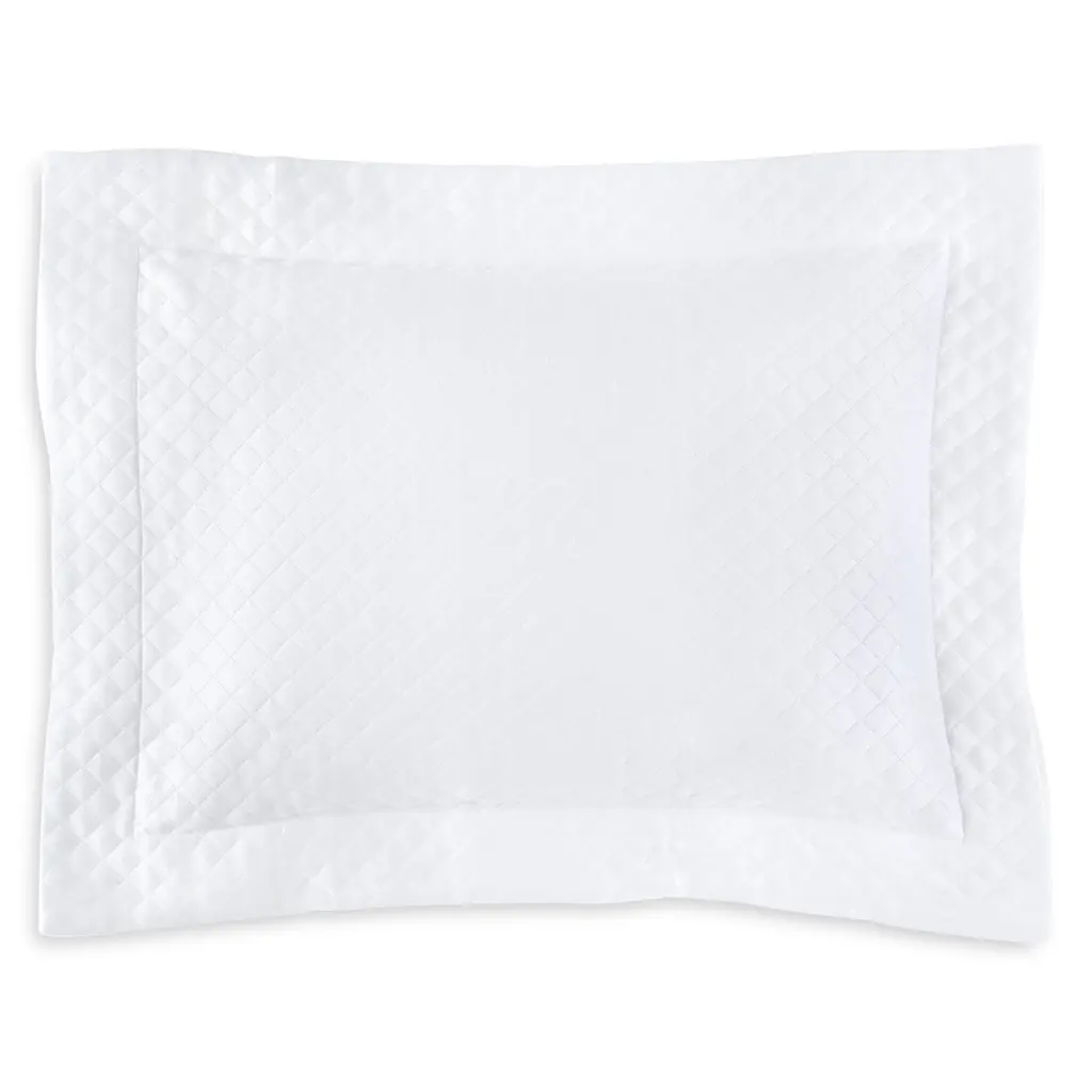 Matouk's sumptuous Petra diamond matelassé fabric is embellished with an iconic sateen tape border in the best-selling Lowell collection. With a subtle sheen and easy drape, these coverlets and shams offer an elevated finish to the bed all year round.