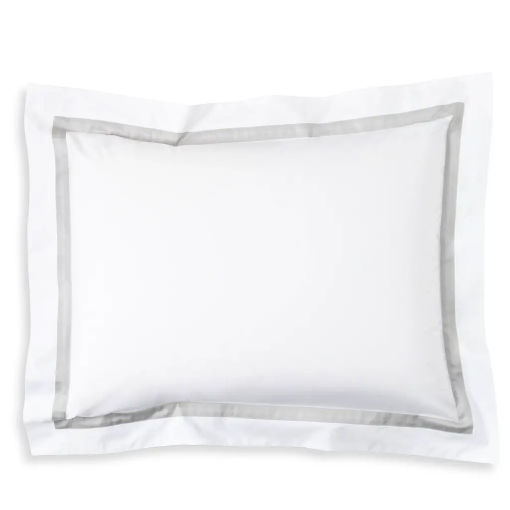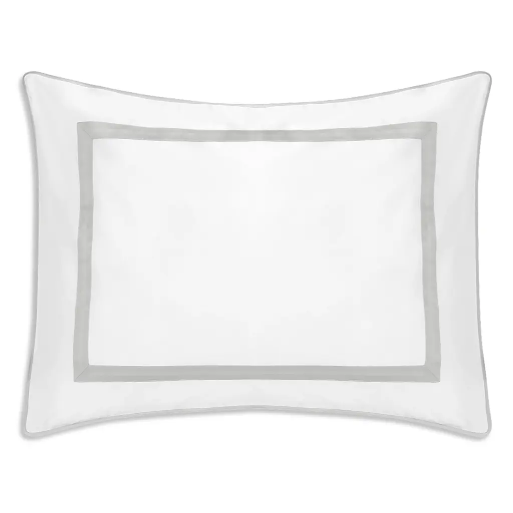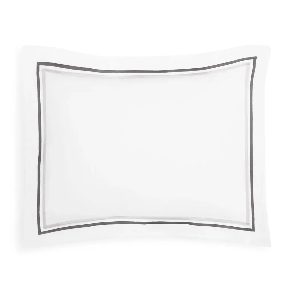 Matouk pairs fabrics of superlative quality with embroidery and couture-level detail to create luxurious bedding and linens. Matouk's rich history of old world techniques and passion for innovation infuses refinement into every collection. A classic bedding collection in crisp, white 600-thread count Egyptian cotton percale with a tape border in muted hues. A coordinating coverlet features an all over pearl matelasse design.