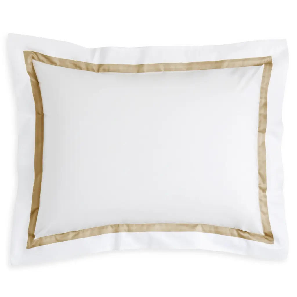 Matouk pairs fabrics of superlative quality with embroidery and couture-level detail to create luxurious bedding and linens. Matouk's rich history of old world techniques and passion for innovation infuses refinement into every collection. A classic bedding collection in crisp, white 600-thread count Egyptian cotton percale with a tape border in muted hues. A coordinating coverlet features an all over pearl matelasse design.