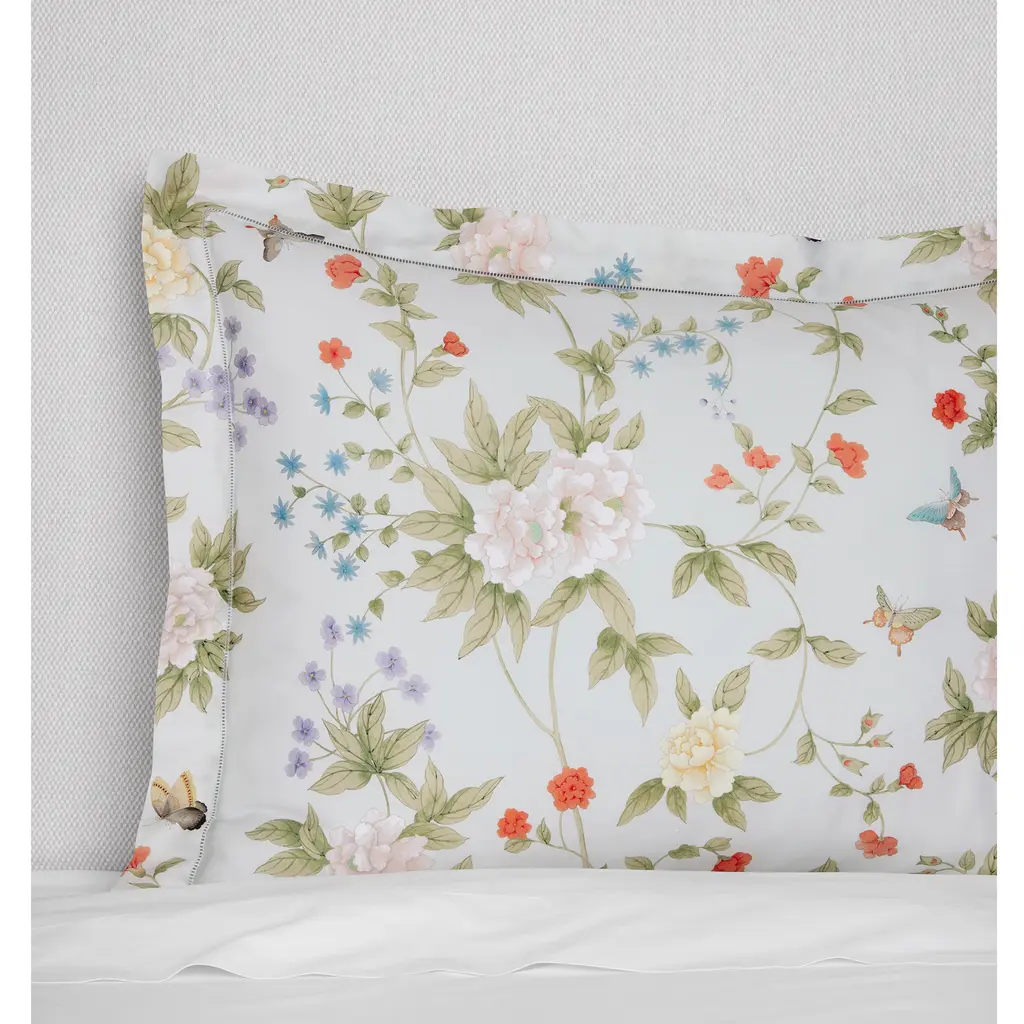 SFERRA and Scalamandré unite once more to unveil a truly exquisite bedding collection featuring Luoyang Garden, a signature archival print reimagined for the modern home. Inspired by the famed peony gardens of Luoyang, China—revered for their beauty and symbolism—the design showcases a lush tableau of blooming peonies and delicately fluttering butterflies.