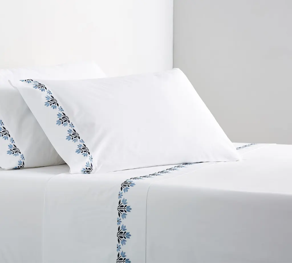 Our Marie Embroidered Scallop Bedding has everything we dream of in a luxury bedding collection - fresh color, beautifully rendered embroidery, and whimsical scallops for a stylishly feminine touch. Each Pillow Sham is meticulously embroidered in restful shades of cornflower blue, and hand finished in wondrously soft cotton-linen blend for a delightful year-round weight. Euro Sham is embroidered in an airy Indian block print-inspired pattern and trimmed in playful scallops. Coordinating Standard and King Shams are intricately embroidered on their scalloped open ends in a lacy floral motif. Marie Embroidered Scallop Sham features: Marie Embroidered Scallop Duvet Cover features: