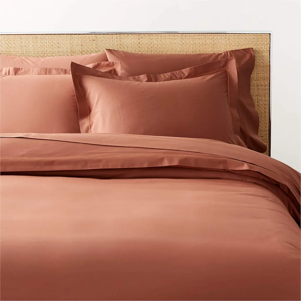 Woven from 100% organic cotton percale, 400-thread-count pillow shams pair the soft, supple hand of cotton with classic hotel-style details. Tailored tonal stitching and a crisp flanged edge lend an understated elegance. Pair with matching duvet cover. CB2 exclusive.