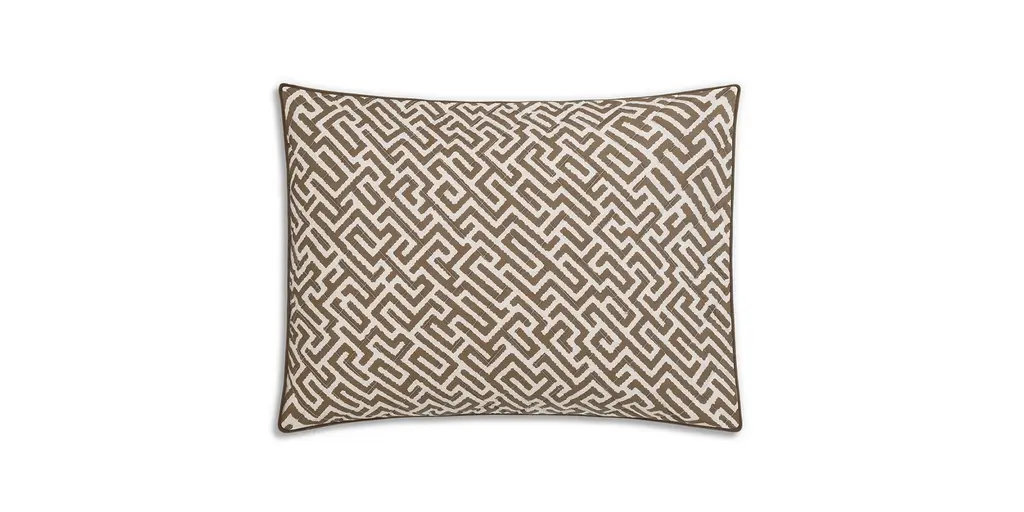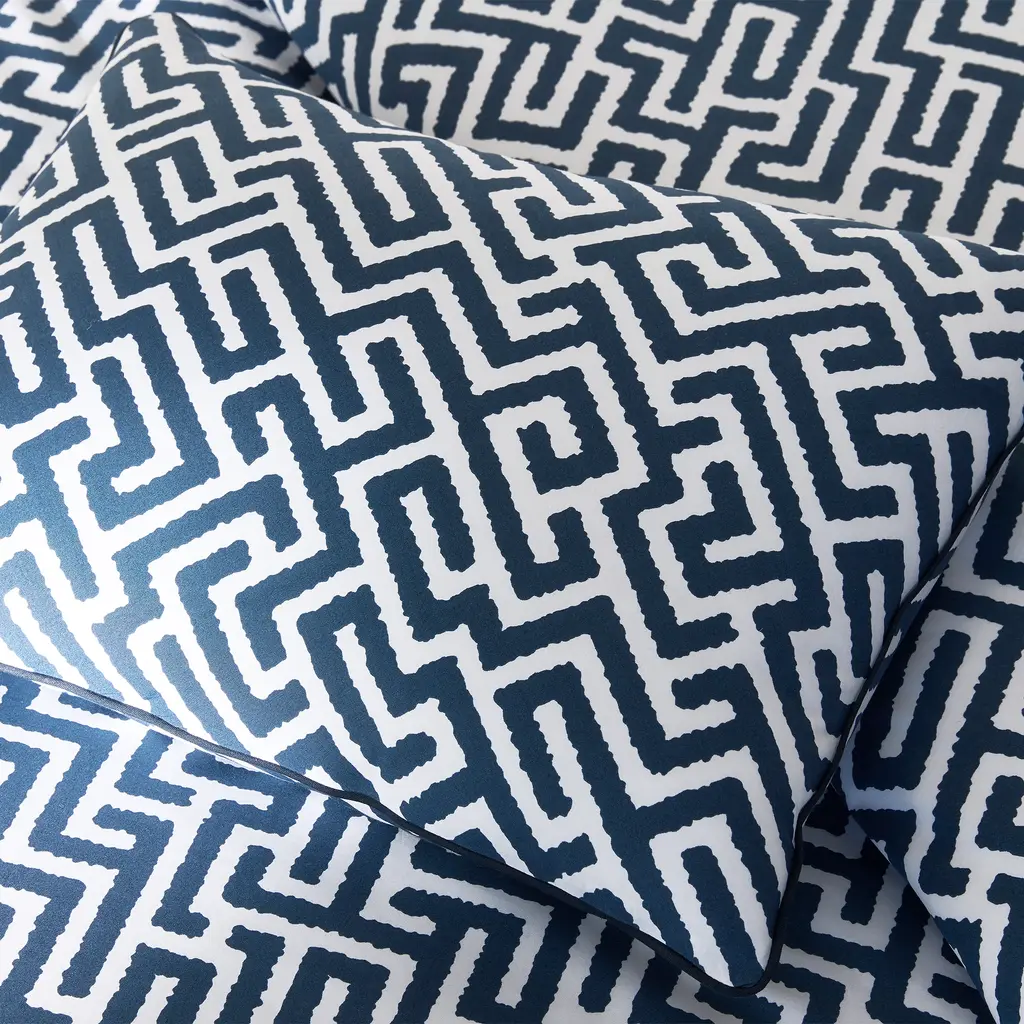 Gabriel is a Matouk Schumacher print featuring a striking geometric motif and complementary corded edge. Reminiscent of a finely woven tapestry, its design introduces dynamic movement and dimension to the bed—boldly graphic yet elegantly refined.