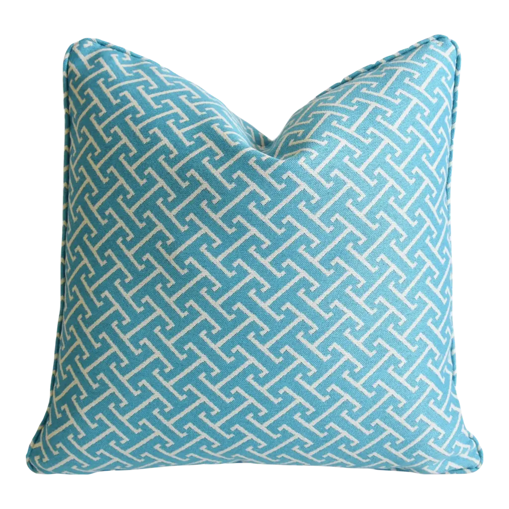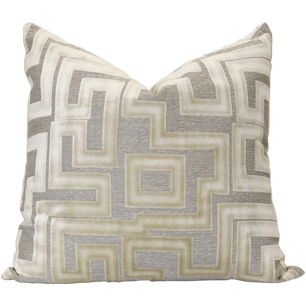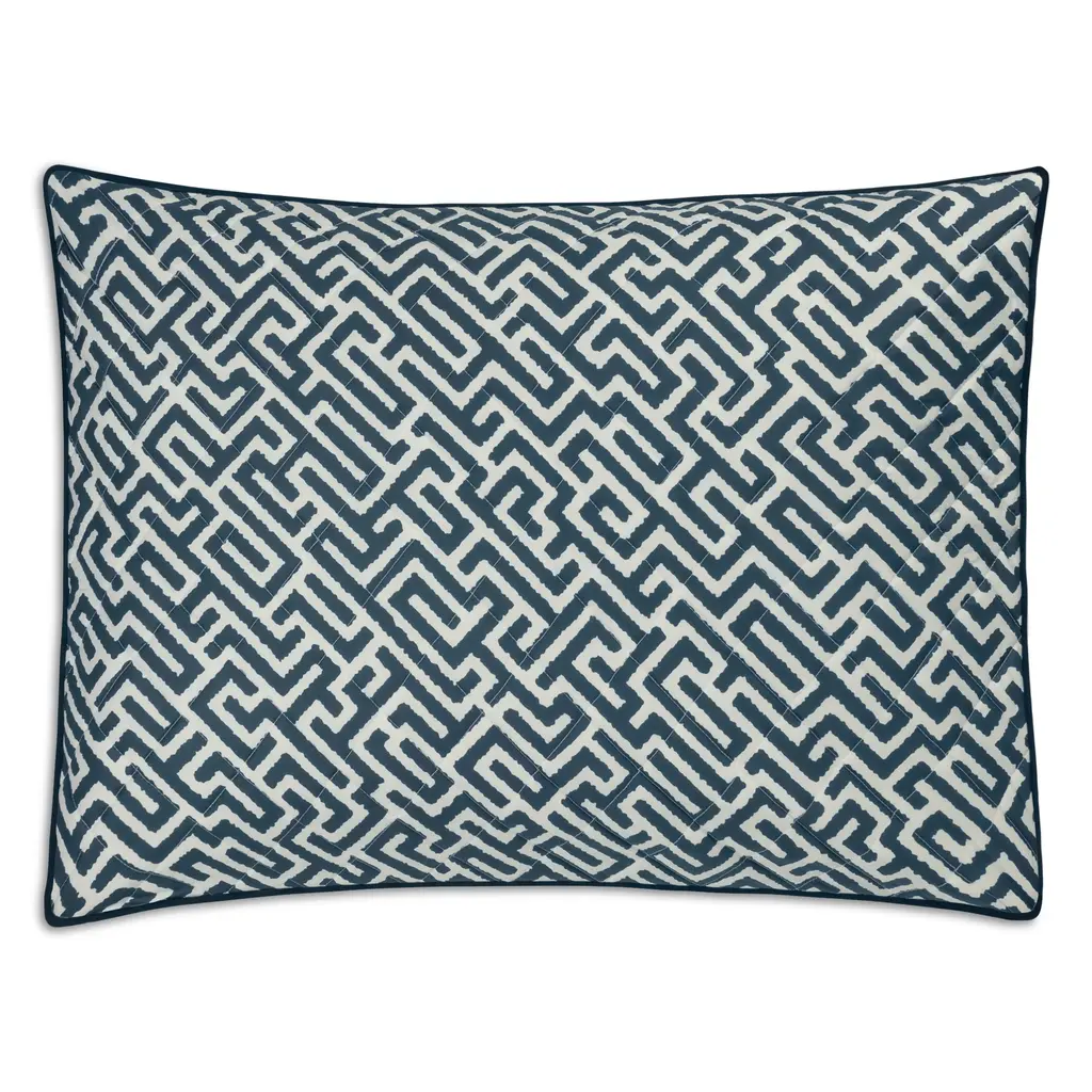 Gabriel is a Matouk Schumacher print featuring a striking geometric motif and complementary corded edge. Reminiscent of a finely woven tapestry, its design introduces dynamic movement and dimension to the bed—boldly graphic yet elegantly refined.