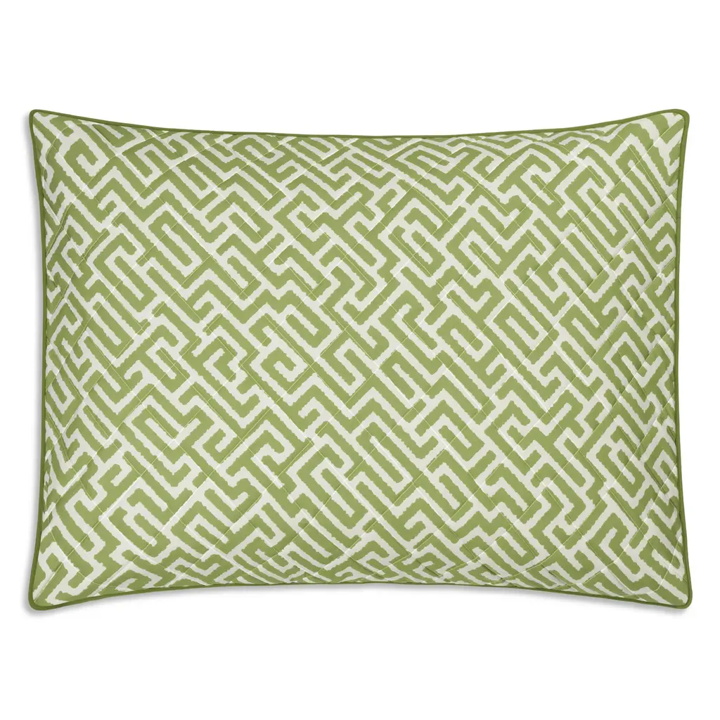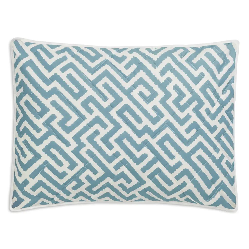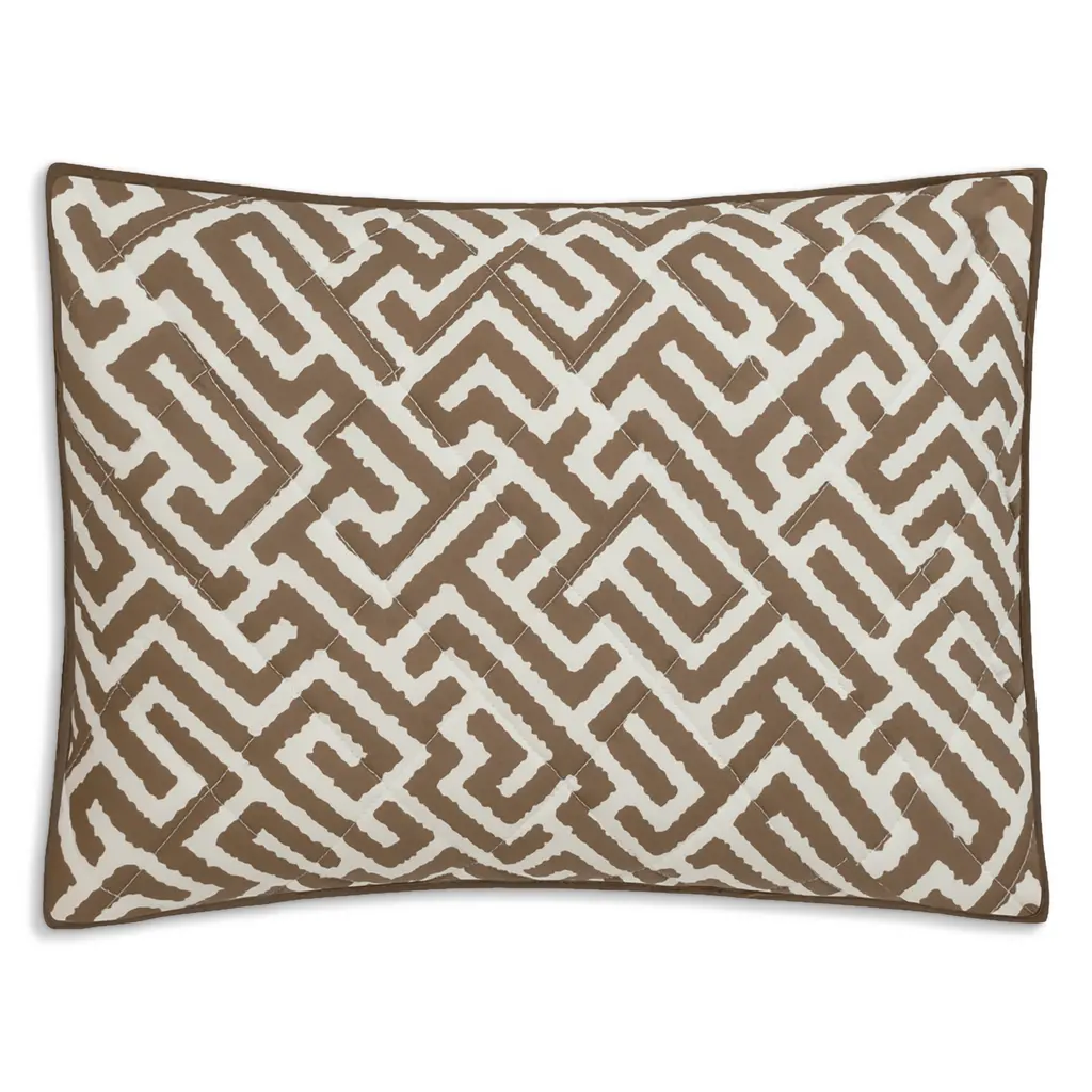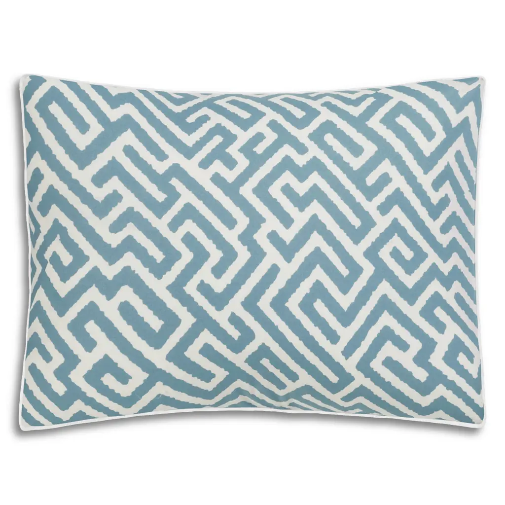 Gabriel is a Matouk Schumacher print featuring a striking geometric motif and complementary corded edge. Reminiscent of a finely woven tapestry, its design introduces dynamic movement and dimension to the bed—boldly graphic yet elegantly refined.