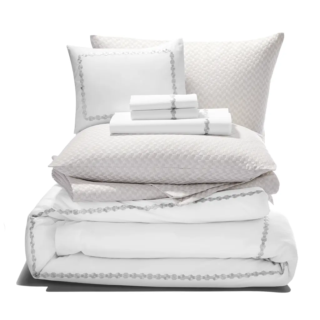 An homage to the energetic elegance of New York City, this excluisve sham from Matouk features an intricate geometric pattern in shades of silver.FEATURES: