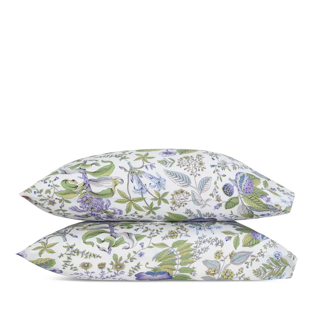 Matouk Schumacher Khilana bedding delights the senses with a large-scale floral pattern inspired by traditional Indian block-print textiles. Printed in Italy on luxurious 500-thread count Luca cotton percale, this romantic yet refined collection is finished with a double satin stitch at the inner and outer edges.