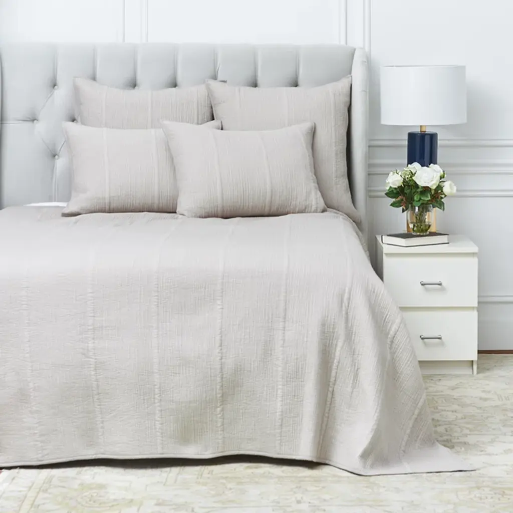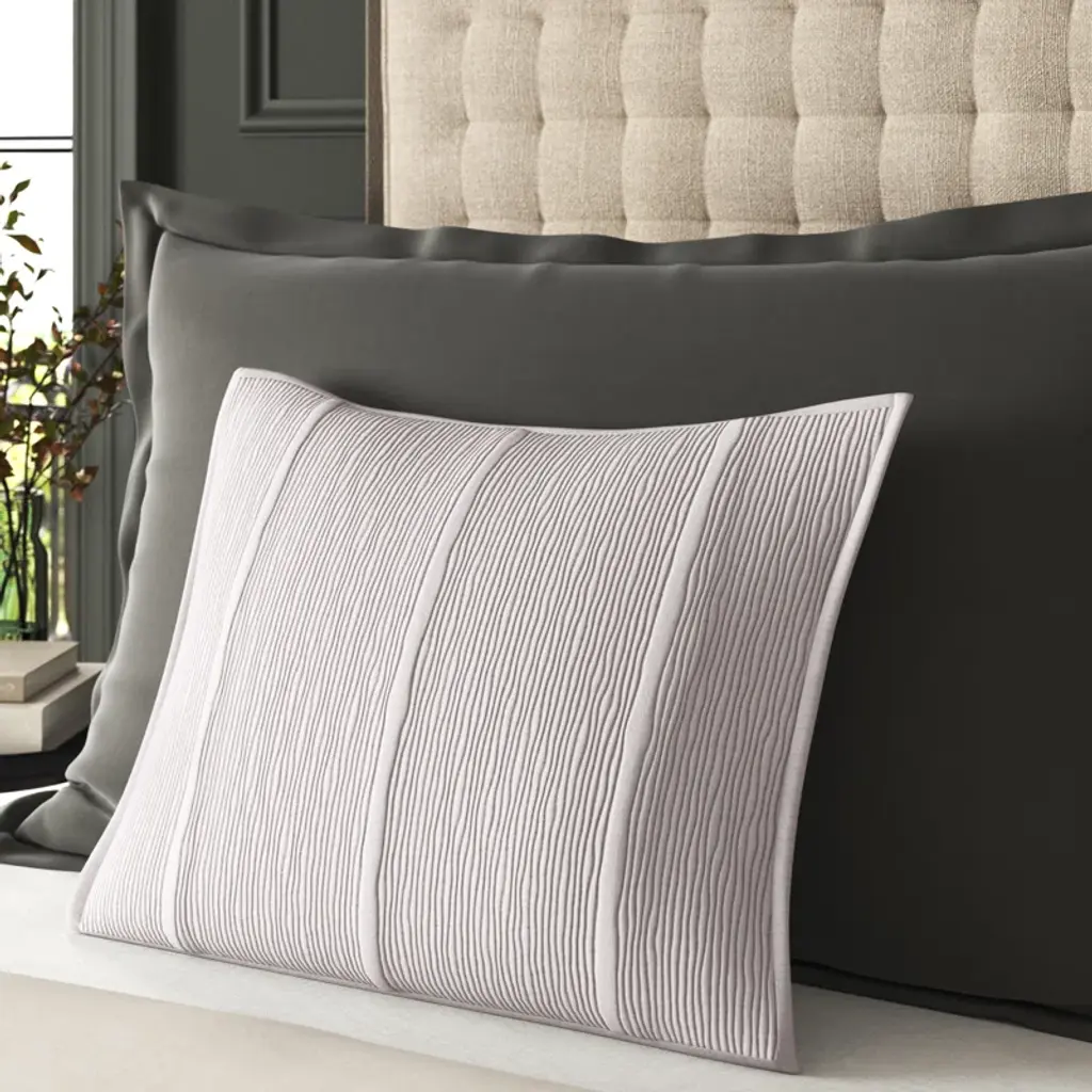 Escape into the dulcet tones and cozy layers of this pillow sham. Expressive cotton voile in an uplifting natural oyster colorway is quilted to evoke the intricate detail of nature's captivating patterns and textures in this unique single sham. We love the understated color palette, plus the subtle texture in the form of a single line. Best of all, this sham is machine washable for totally fuss-free upkeep.