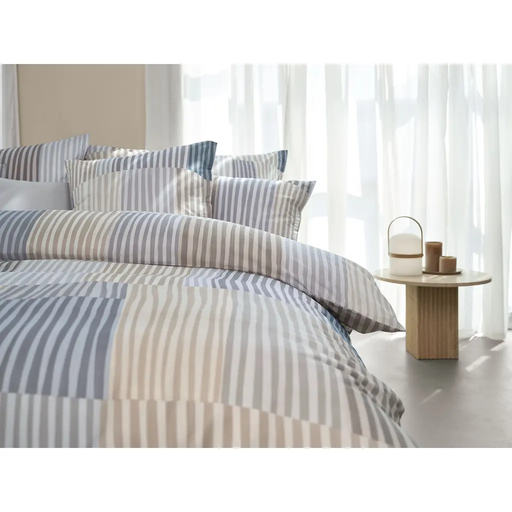 Melvin is crafted in Schlossberg's sateen with calming stripes and cool-tones highlighting the soft cotton fabrication spun into a smooth matte sheen.