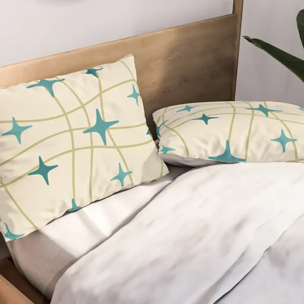 Mid Century Modern Cosmic Star Pattern 693 Cream Turquoise Olive Pillow Sham