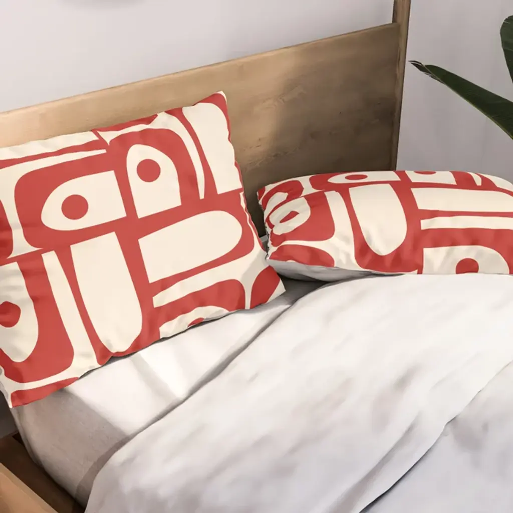Mid Century Modern Piquet Abstract Multi Red And Cream Pattern Pillow Sham