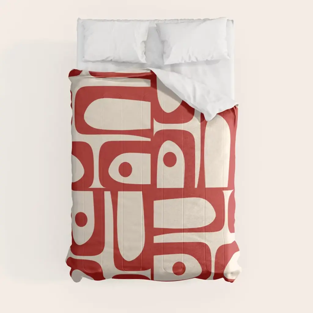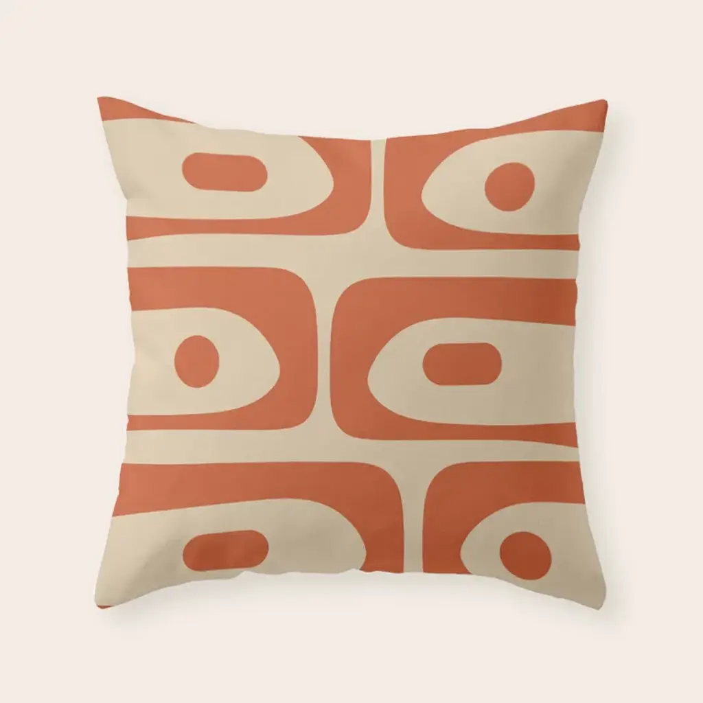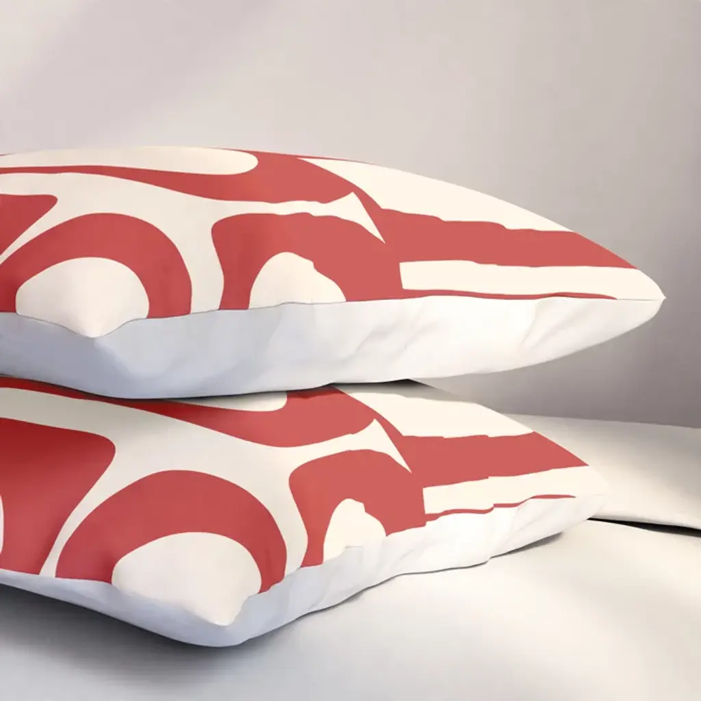 Mid Century Modern Piquet Abstract Multi Red And Cream Pattern Pillow Sham