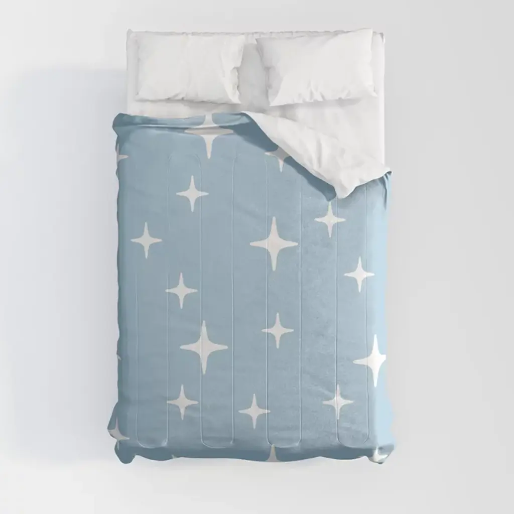 Mid Century Modern Star Pattern 443 Pale Blue Pillow Sham
