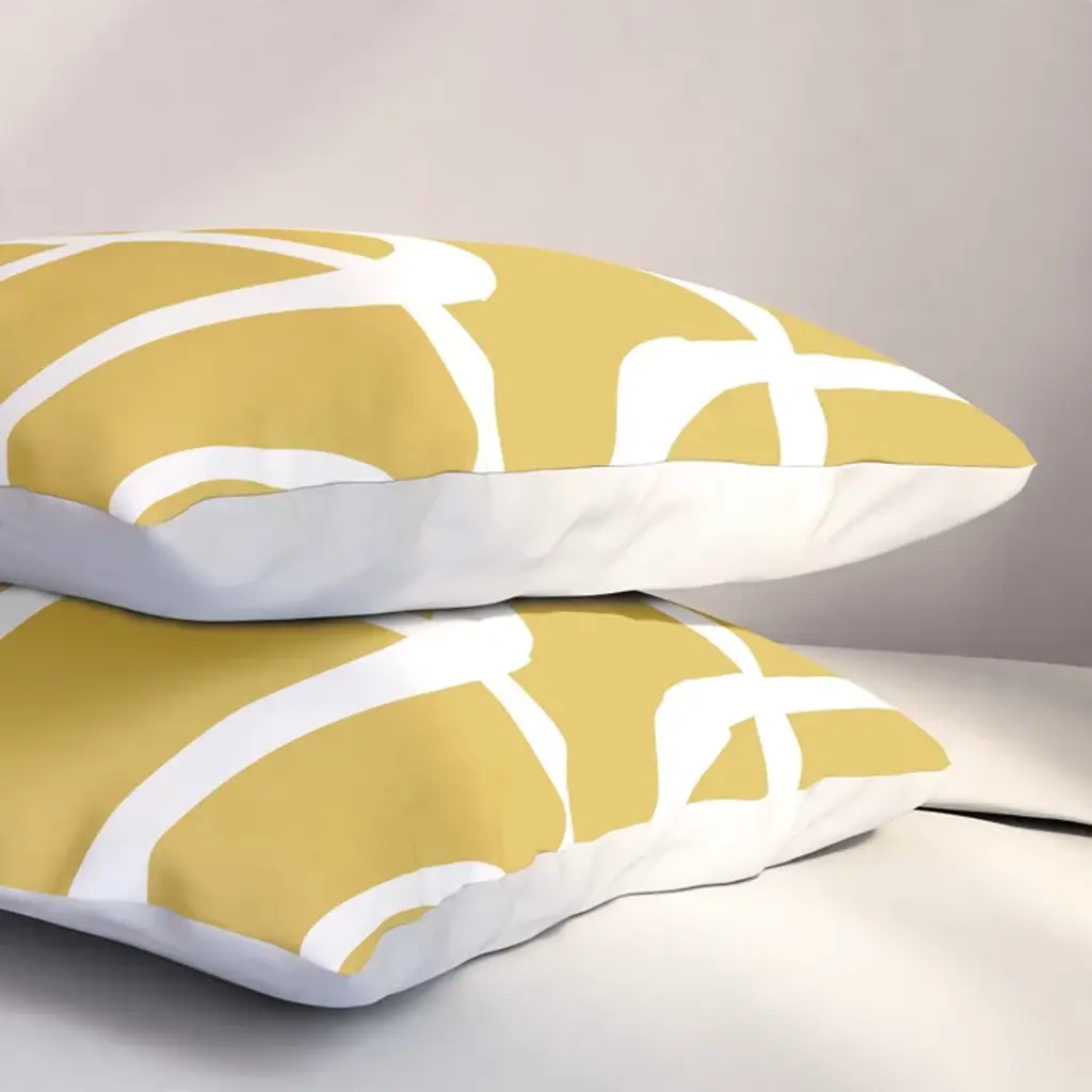 Midcentury Modern Loops Pattern In White And Light Mustard Pillow Sham