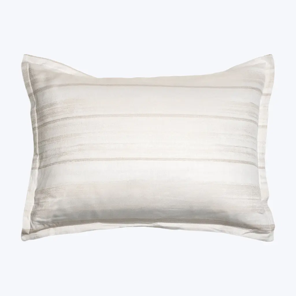 Discover the Mirage Sham Shell by Kevin O’Brien Studio. Featuring a sophisticated natural palette and subtle painterly stroke, this elegant sham brings timeless refinement to any bedroom. Crafted in Portugal in OEKO-TEX®-certified BCI cotton. Pair with the Mirage Duvet Shell.