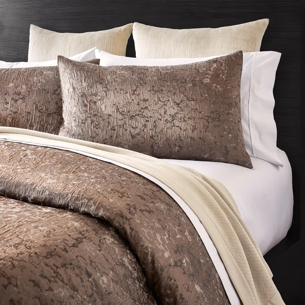 Designed for those with a discerning eye for elegance, the Donna Karan Mirage Bedding Collection showcases a woven jacquard in mink hues, displaying a delicate interplay of subtle texture and luminous shimmer. It offers a buttery-smooth feel for restful nights.