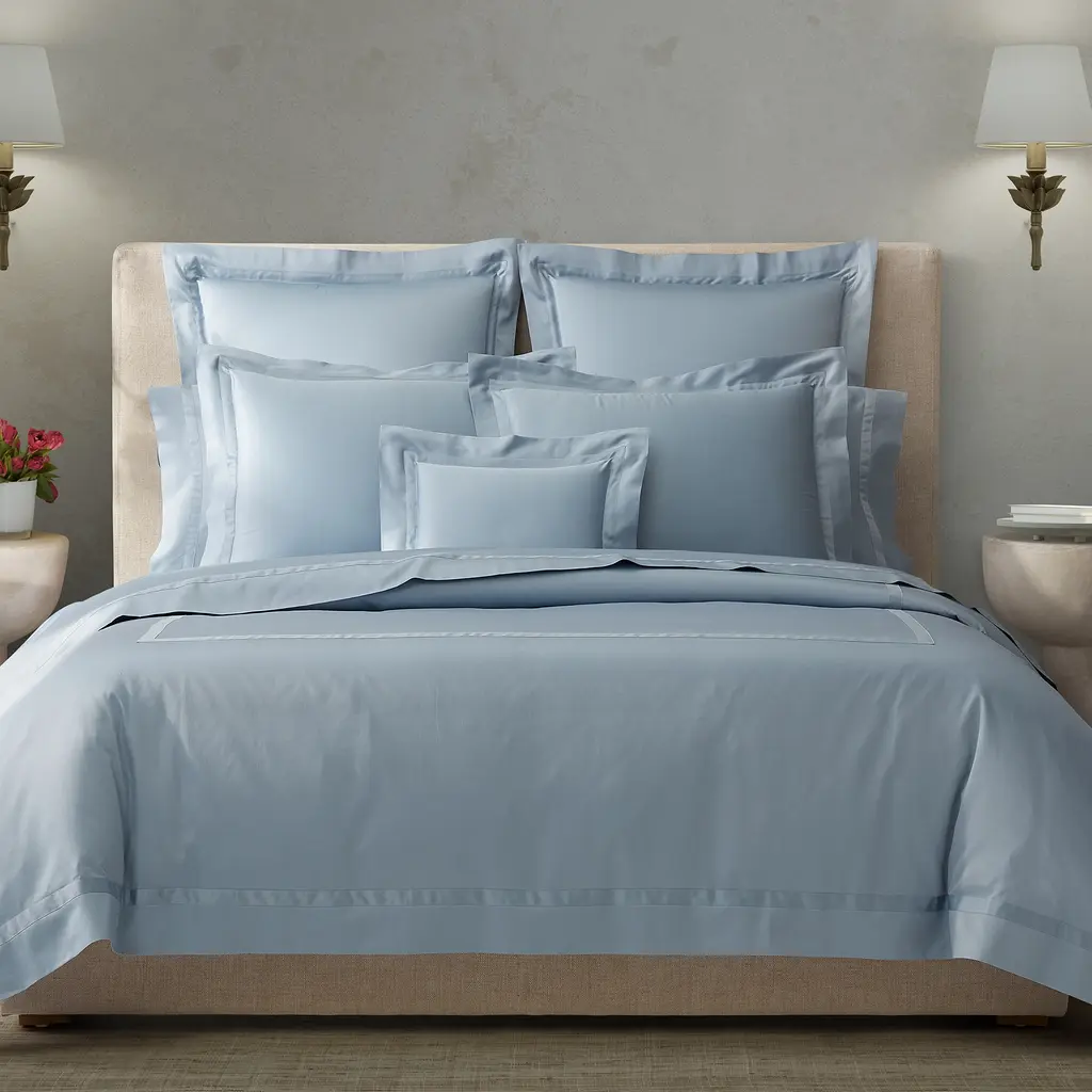 Crafted from fine Egyptian cotton, Nocturne bedding completes an opulent or traditional space, with its classic colors and luminous sheen, accented with a tonal ribbon border. Shams are accented with a tonal ribbon border.