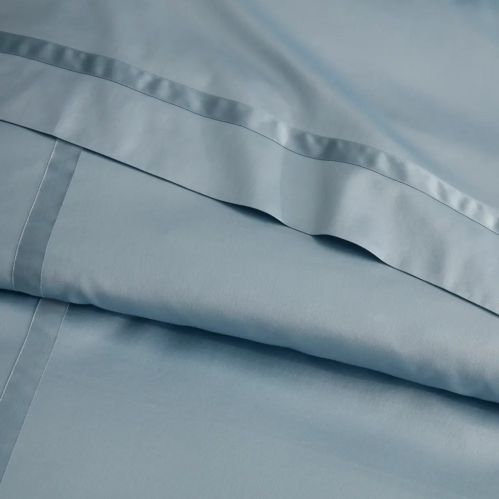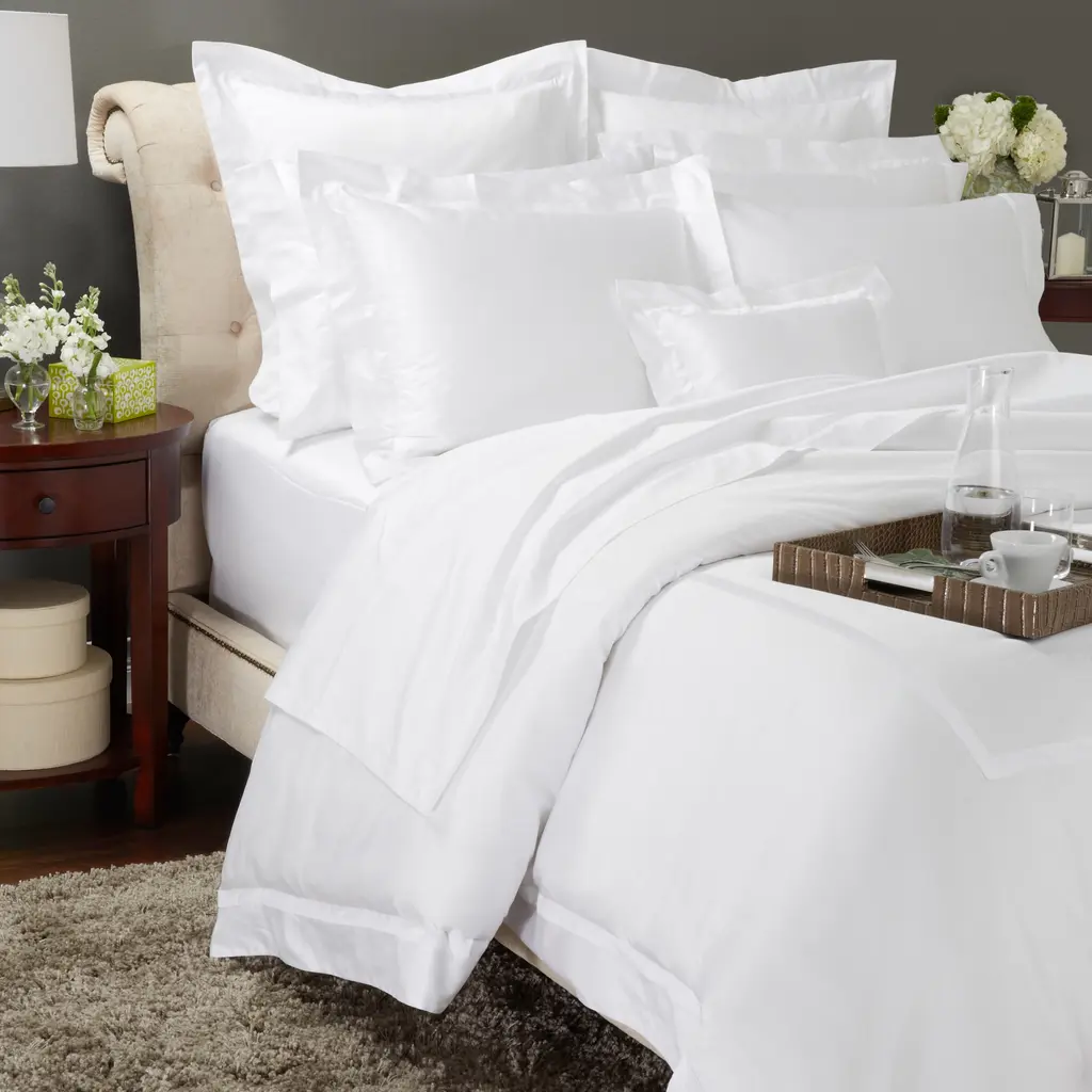 Crafted from fine Egyptian cotton, Nocturne bedding completes an opulent or traditional space, with its classic colors and luminous sheen, accented with a tonal ribbon border. Shams are accented with a tonal ribbon border.